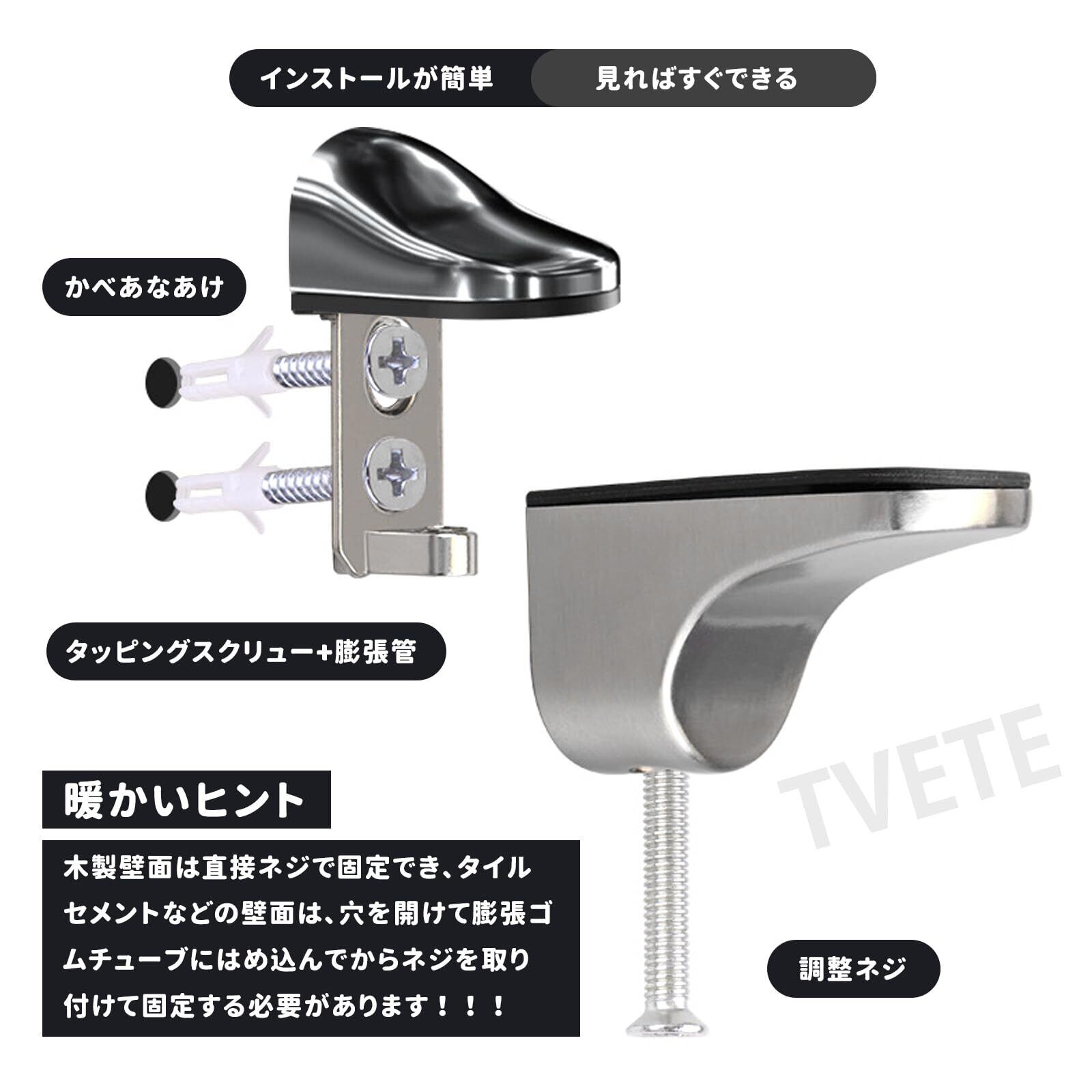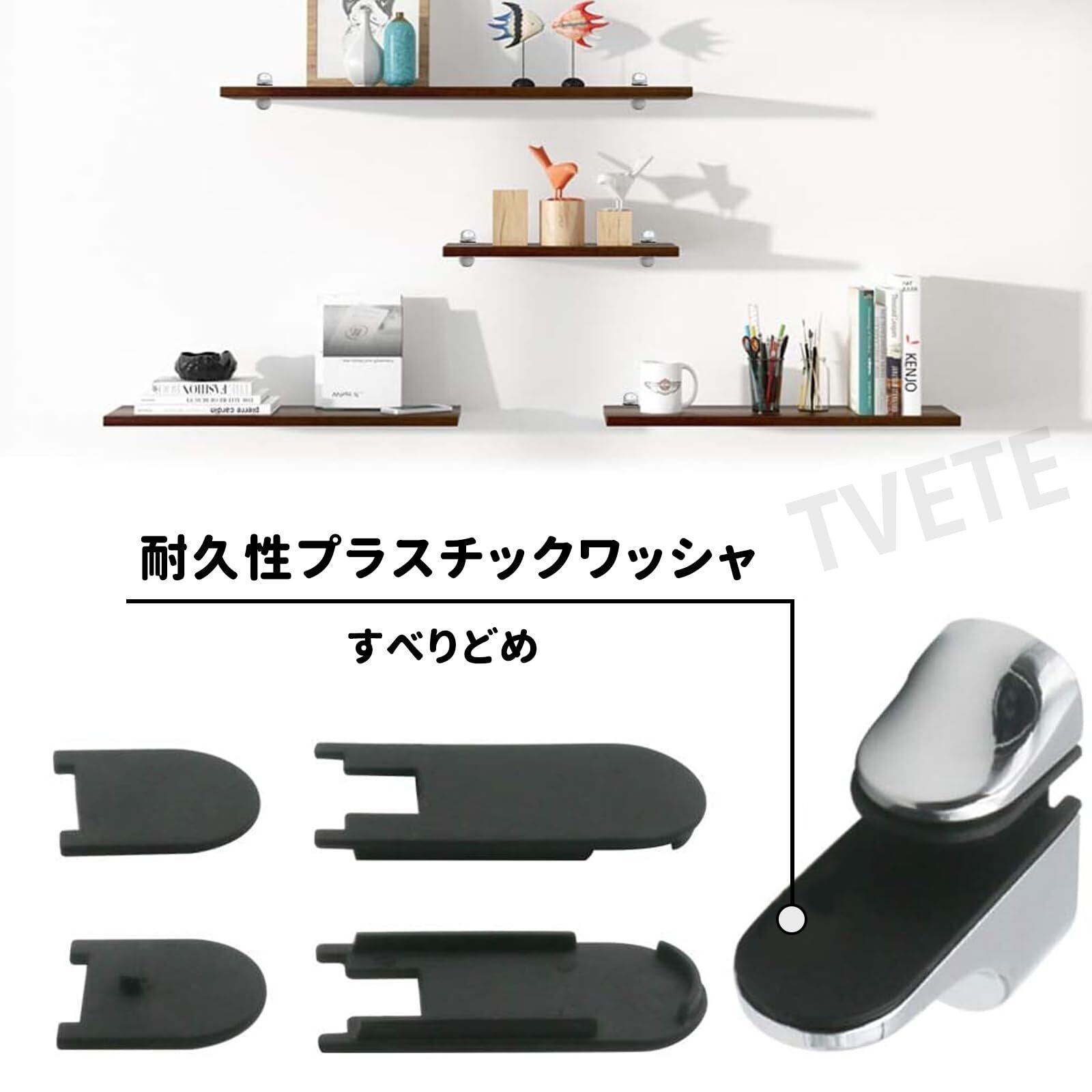 TVETEガラスクランプ ガラス棚ホルダー ガラス棚板受け金具 モダンなガラス棚ホルダー 調節可能な壁ブラケット ガラス棚ブラケット プ壁掛けガラスサポート厚さ5~18mmの木材/ガラスに適しています シャワールームキッチンオフィスでのディスプレイ用
