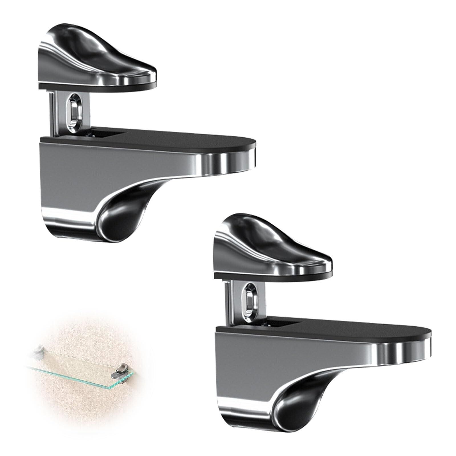 【良質の製品】ミニマルなシルバー仕上げのガラスシェルフブラケットは、リビング・浴室・店舗陳列棚まで幅広い空間にマッチ。亜鉛合金の金属光沢が現代的な洗練感を演出し、機能美と実用性を両立します。