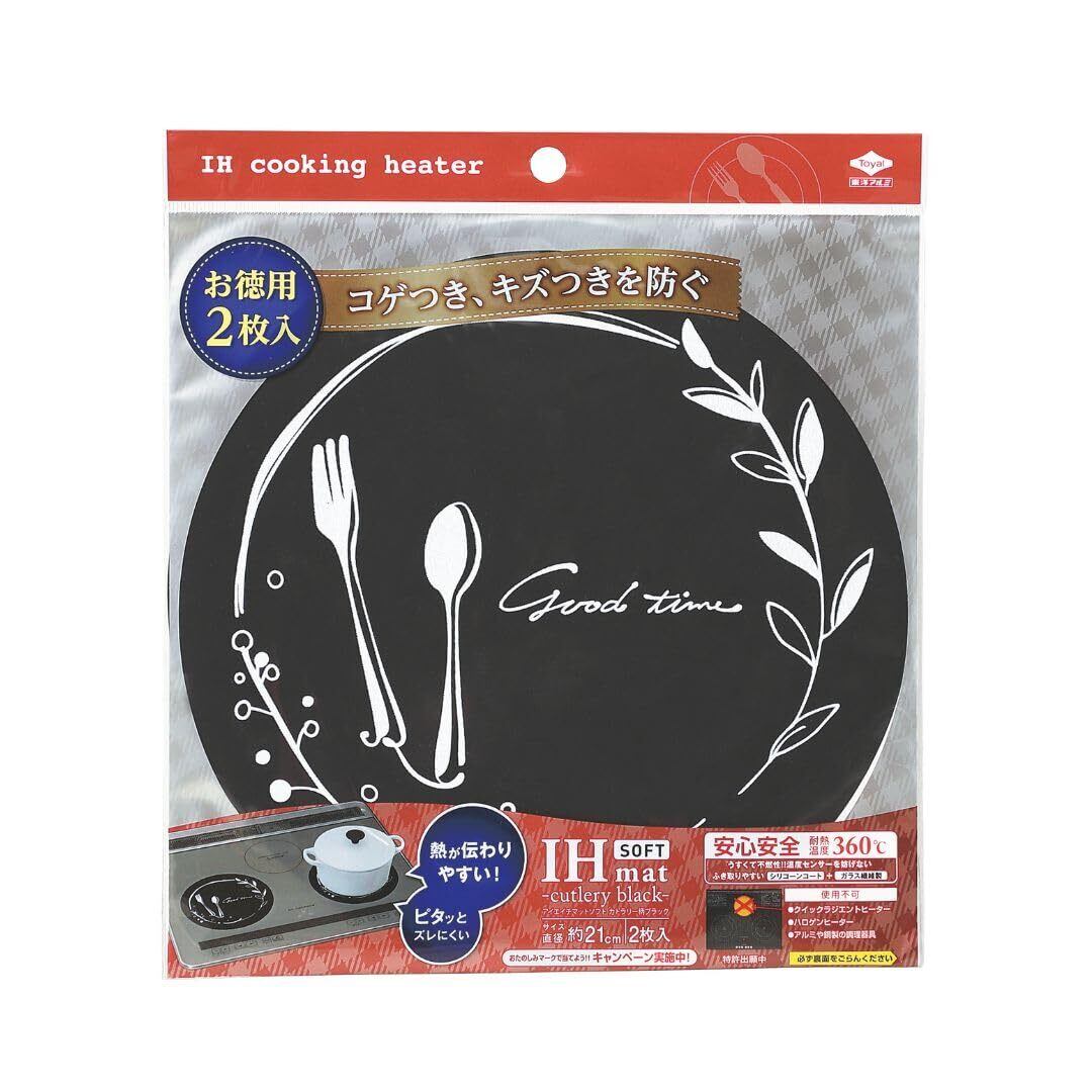 東洋アルミ IHマット 直径約21cm 2枚入 カトラリーブラック 薄くズレにくいsoftタイプ コゲ、キズ防止 水洗い IHクッキングヒーターカバー S3133