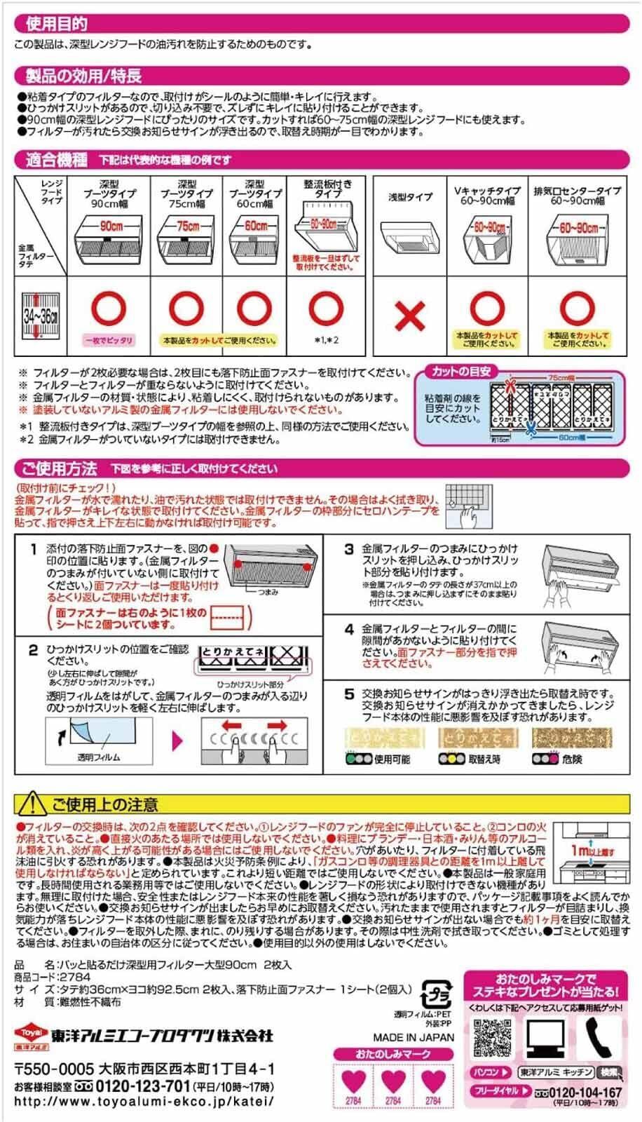 東洋アルミ(Toyo Aluminium) (TOYO ALUMINIUM) レンジカバー 白 約36x92.5cm パッと貼るだけカンタン幅90cm深型レンジフード用フィルター 9602 2個入 3個セット