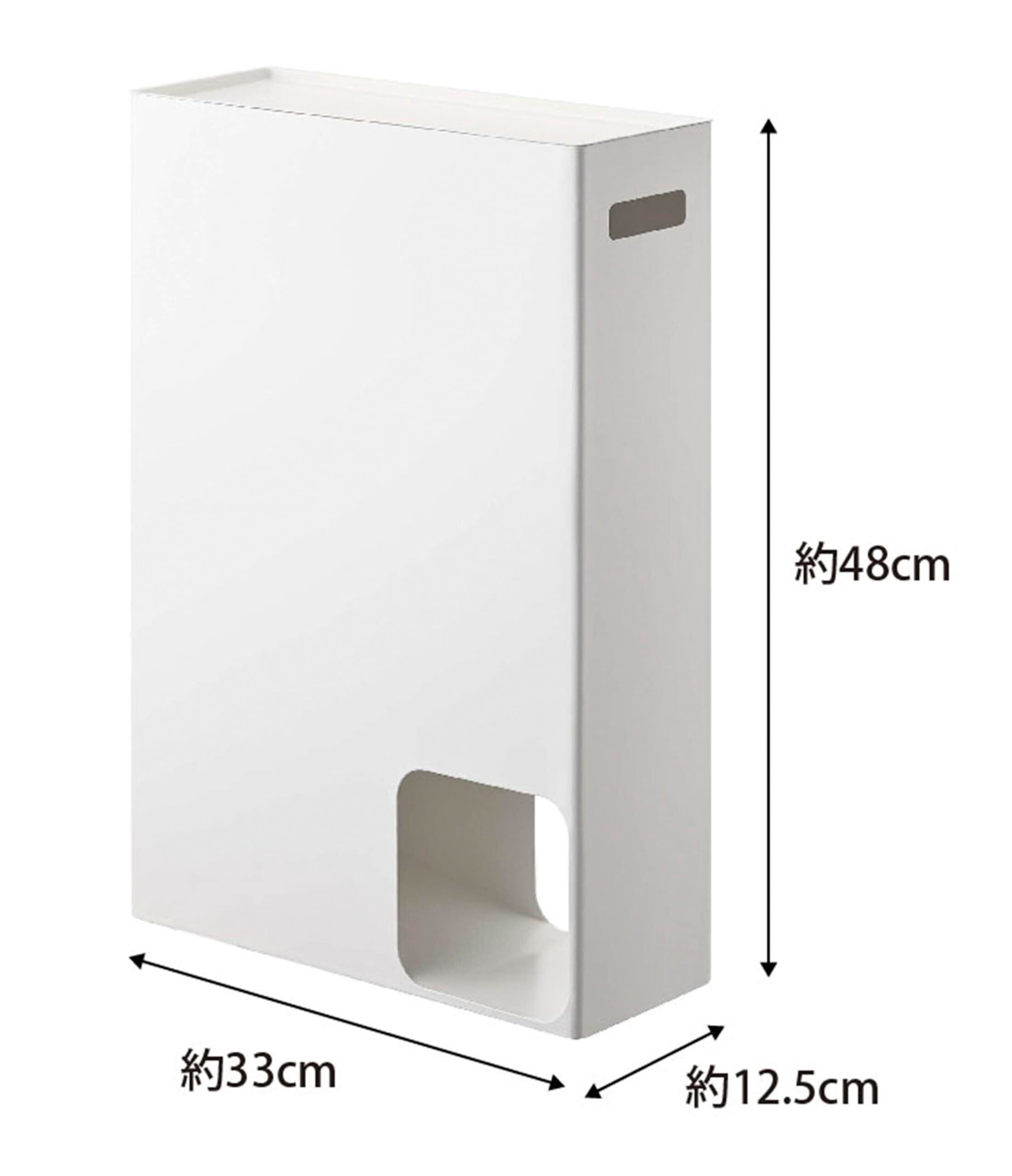 ●トイレットペーパー12ロールを美しく隠してスリムに収納。1ロール取り出すと次のロールが出てくる便利な構造。コーナーに置けば存在を主張せず、空間に美しくなじみる。 取り出し口が両面に貫通しているので設置の向きに困ることもない。トイレットペーパー12ロールをまるごと収納できる。取っ手穴が付いているので移動や掃除もラクラク。1個取り出すと次のロールがスタンバイ!