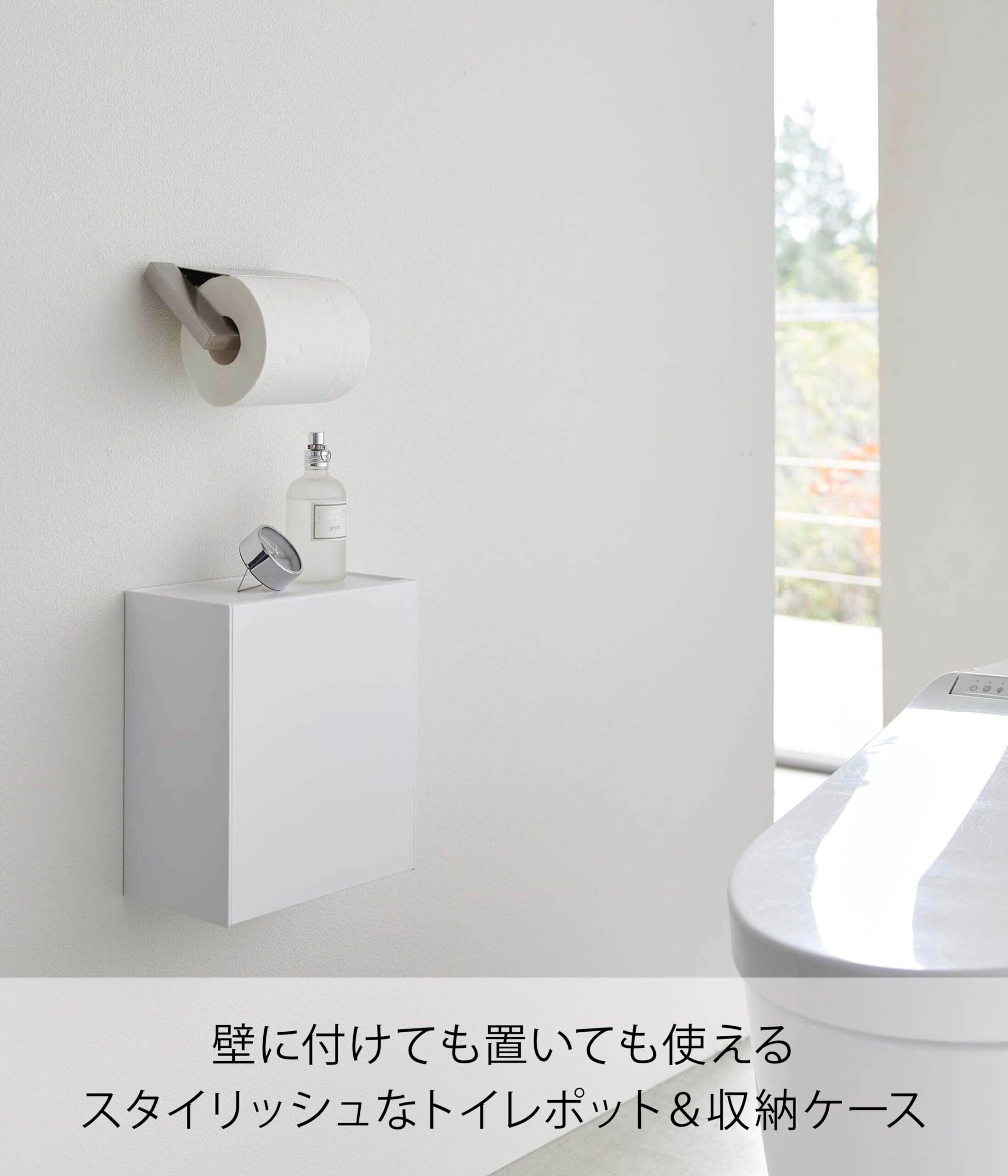 山崎実業(Yamazaki) ウォール トイレポット & 収納ケース ホワイト 約W20.5XD12.2~23.2XH24cm タワー フラップ式 小物収納 ゴミ箱 5429