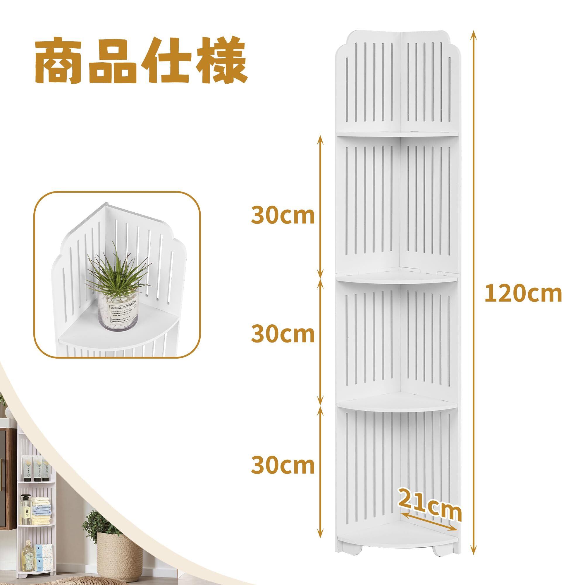 VECELO トイレ収納 ラック トイレ 棚 コーナー棚 トイレラック 隙間収納 省スペース バスルーム収納棚 幅21x奥行き21x高さ120cm スリム 収納ラック 防水 防湿 組立簡単 トイレ・洗面所・リビング適用 ホワイト