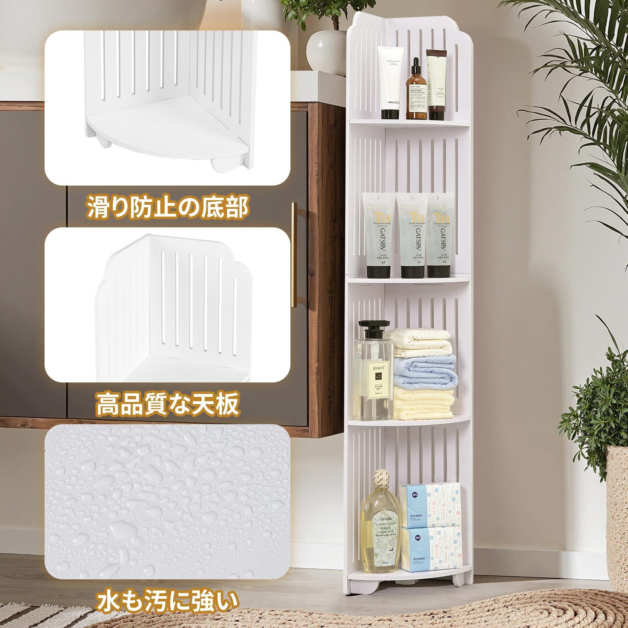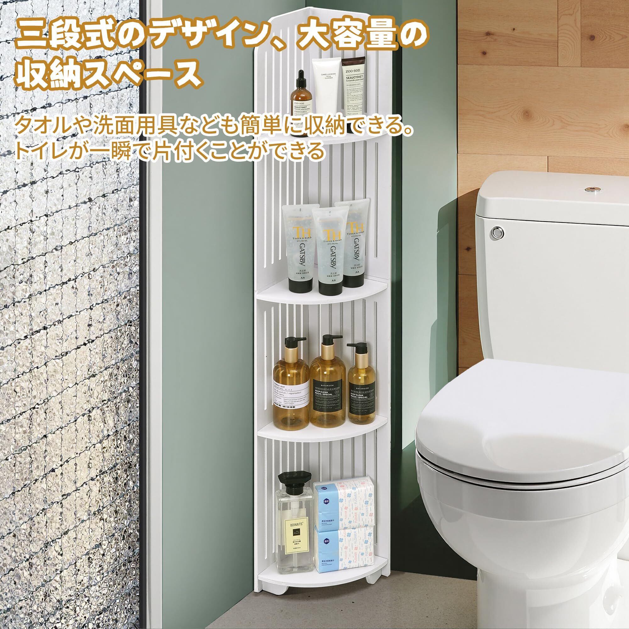 このスリムトイレ収納ラックは、狭いスペースを有効活用できる実用的な収納アイテムです。