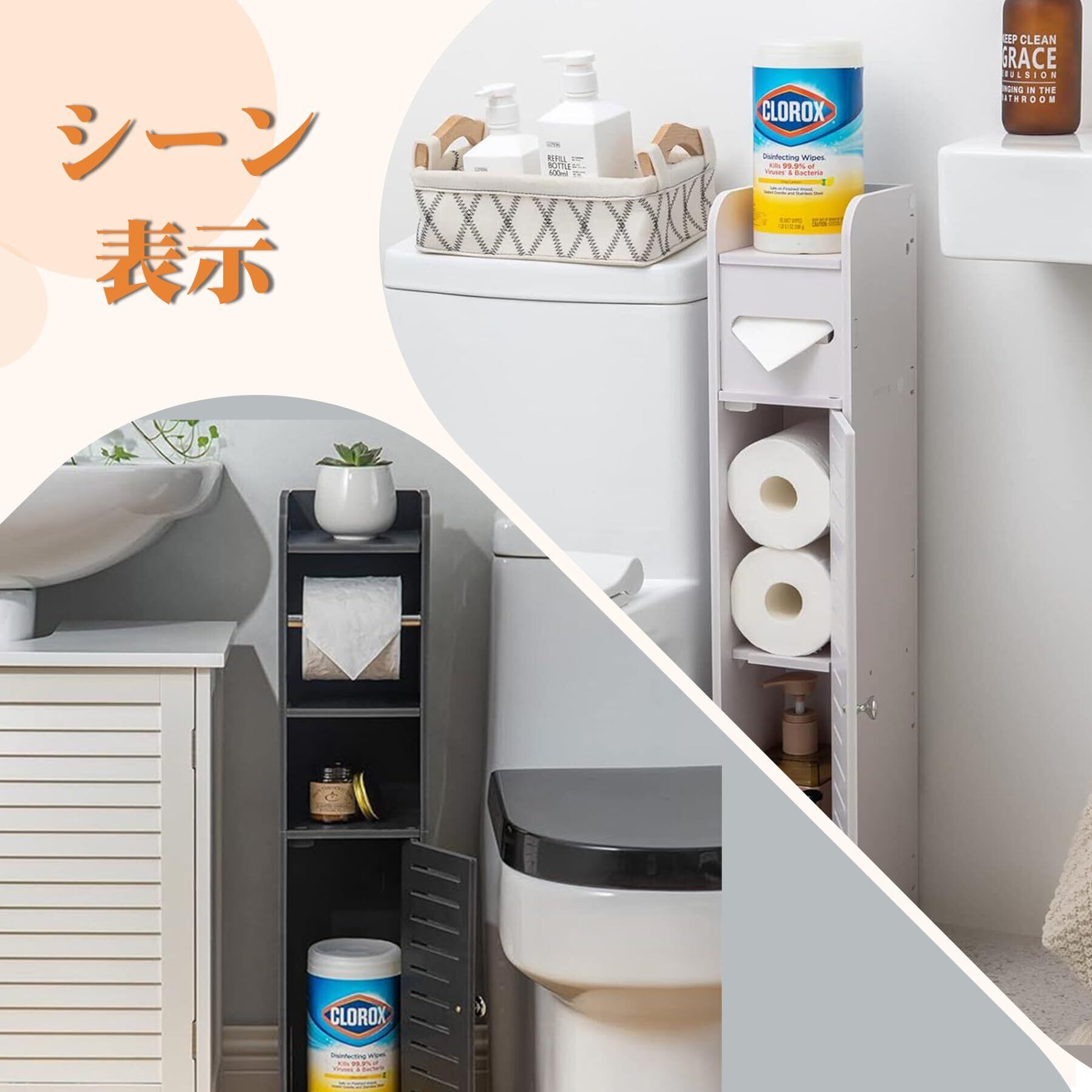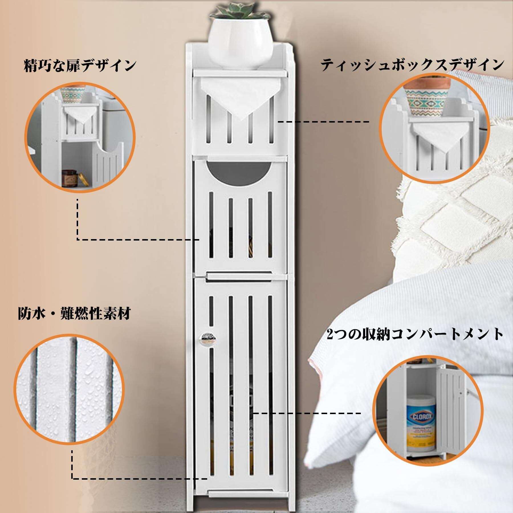 CZEAR トイレ 収納 隙間収納 スリム 収納 防水 防湿 組立簡単 玄関/洗面所/寝室/書斎 省スペース バスルーム収納 トイレ 収納 隙間収納