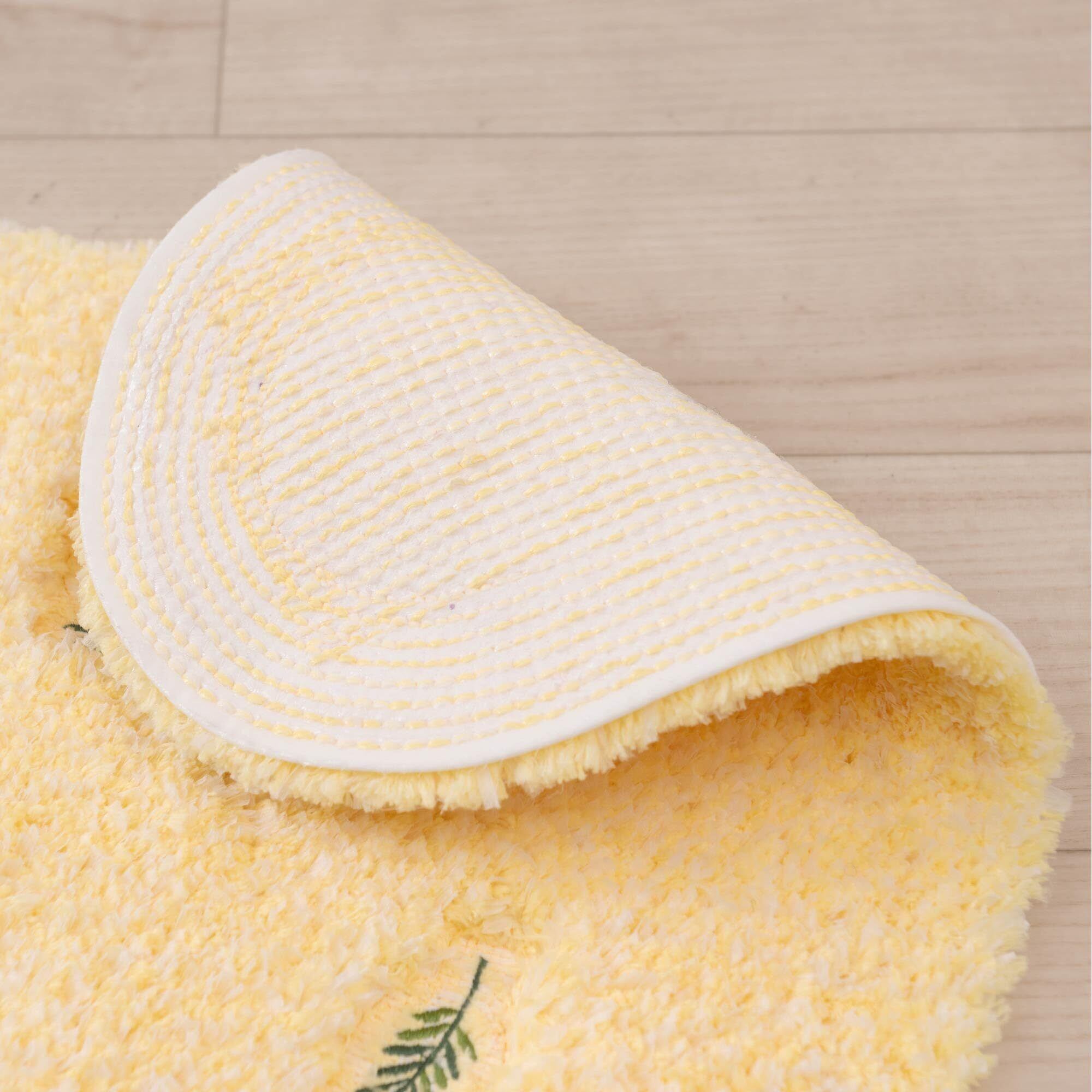 ポリエステル糸とポリエステルのスリット糸をミックスしたボリュームあるベースにミモザの花刺繍を散りばめました。ふんわり優しいイエローカラーが愛らしい、標準サイズのトイレマットです。