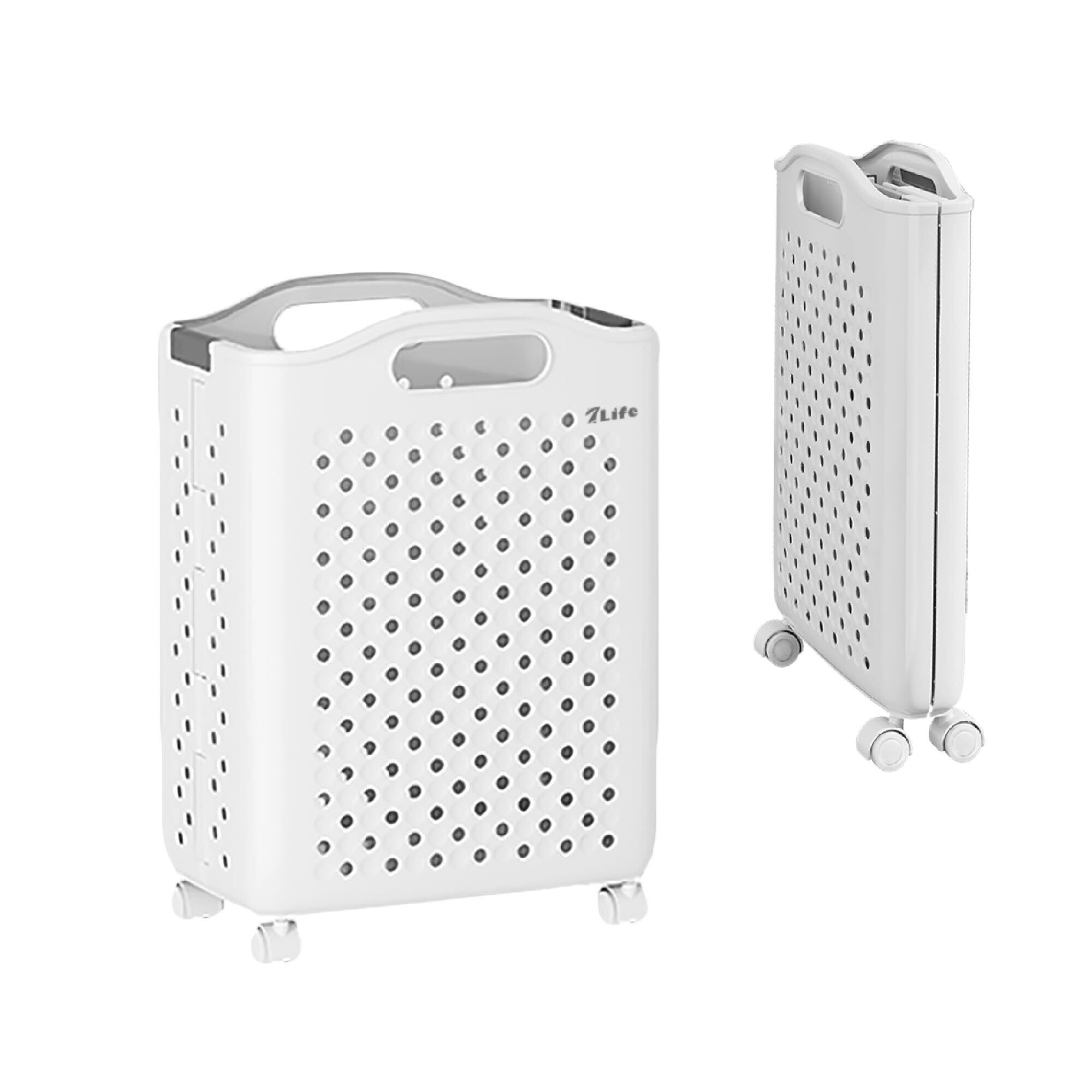 7 Life 洗濯かご 折りたたみ ランドリーバスケット ランドリーボックス 洗濯かご 大容量 洗濯 カゴ 洗濯 籠 洗濯ものかご 洗濯カゴ スリム 洗濯物入れ (ホワイト, S)