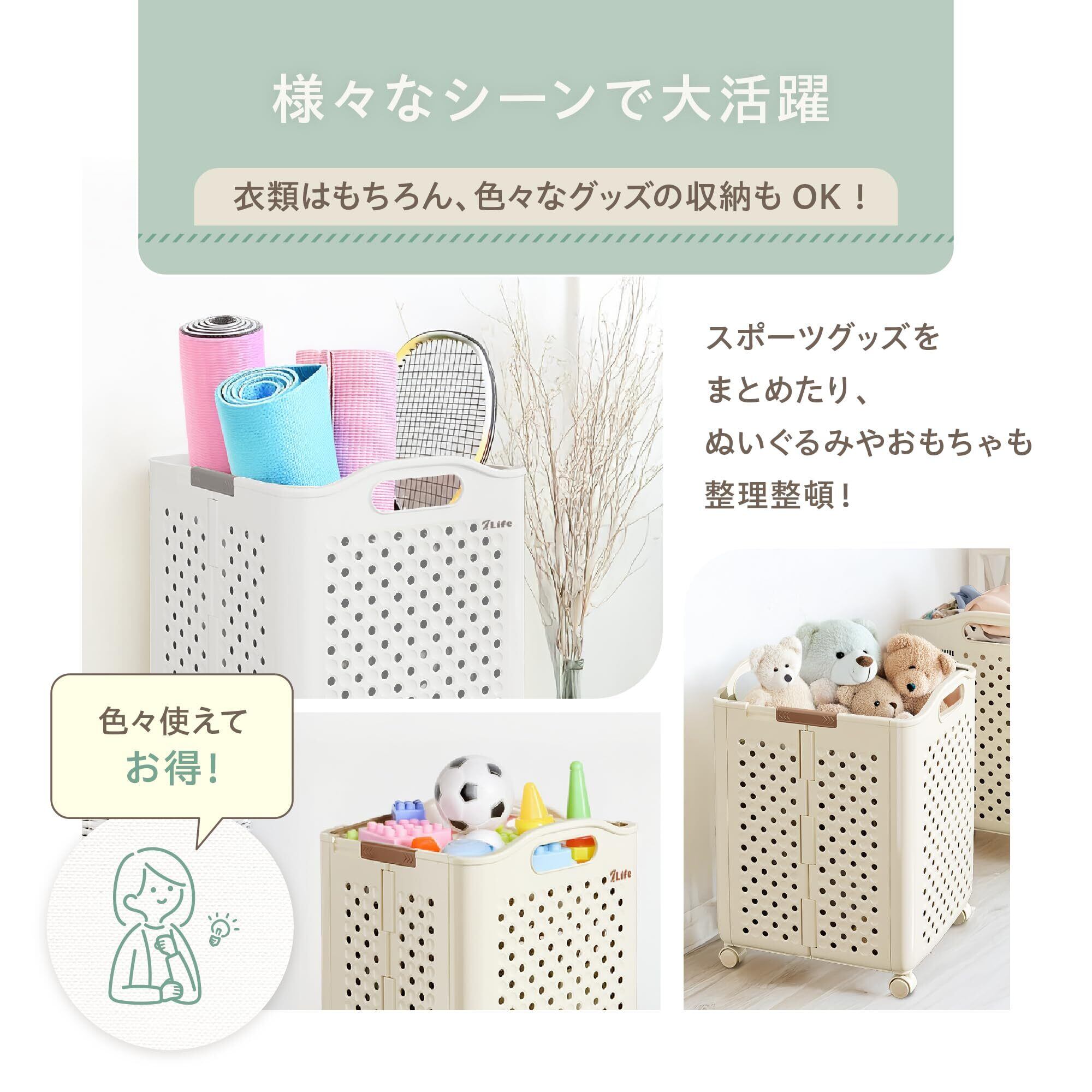 【選べるカラーとサイズ】一人暮らしから大家族まで、洗濯スタイルに合わせて選べる便利な3サイズ。Sサイズは一人暮らし、Mサイズは2~3人、Lサイズは大家族やまとめて洗濯する方に最適です。洗濯物の分別にも便利。カラーは、柔らかでかわいい雰囲気の部屋に似合うクリーム(くすみカラー)と北欧からシンプルまでカバーし、スタイリッシュなお部屋にもぴったりなホワイトの無地2色からお選びいただけます。