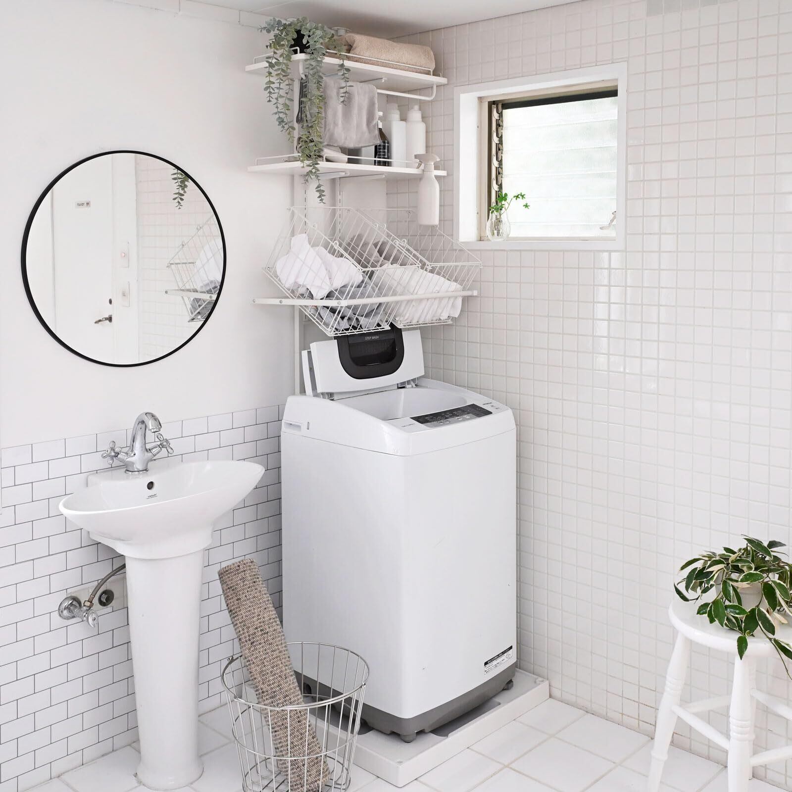 【洗濯機まわりに】デッドスペースになりがちな洗濯機上の空間を有効利用できるランドリーラックです。洗剤やタオルの収納スペースを増やせます。