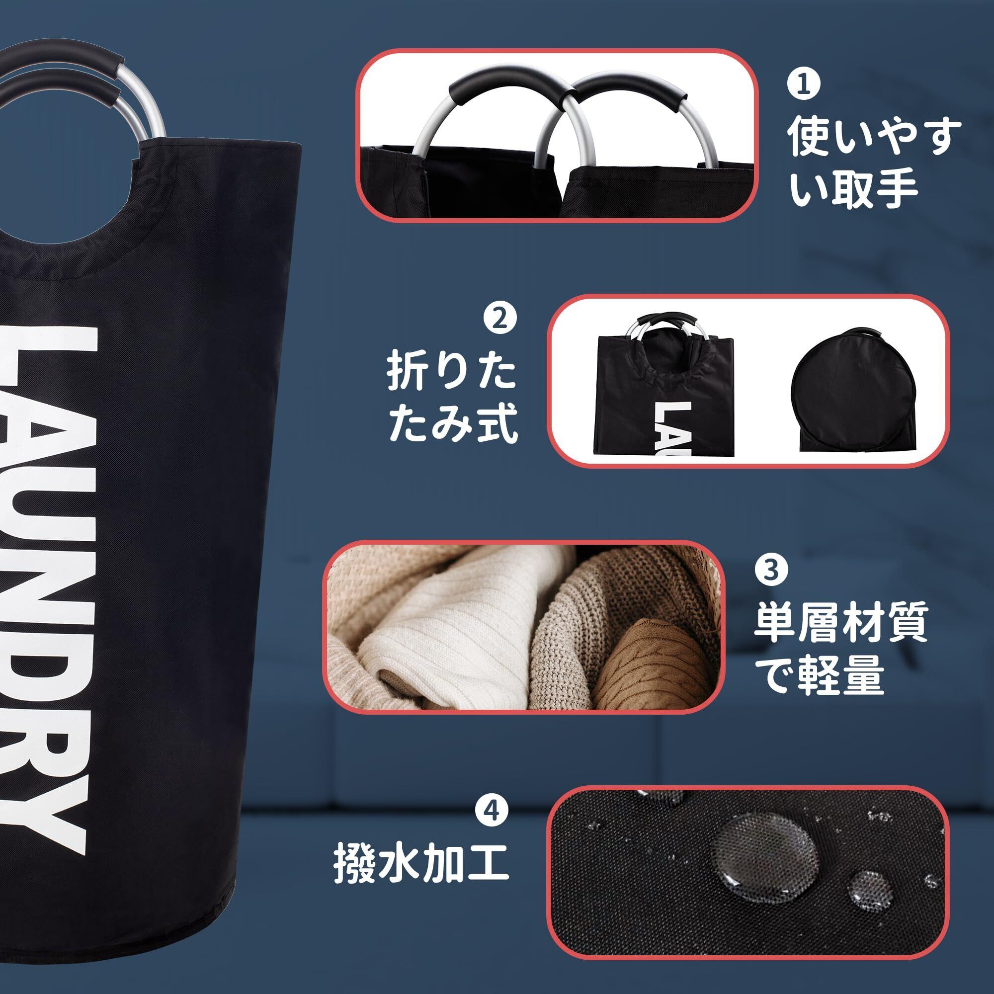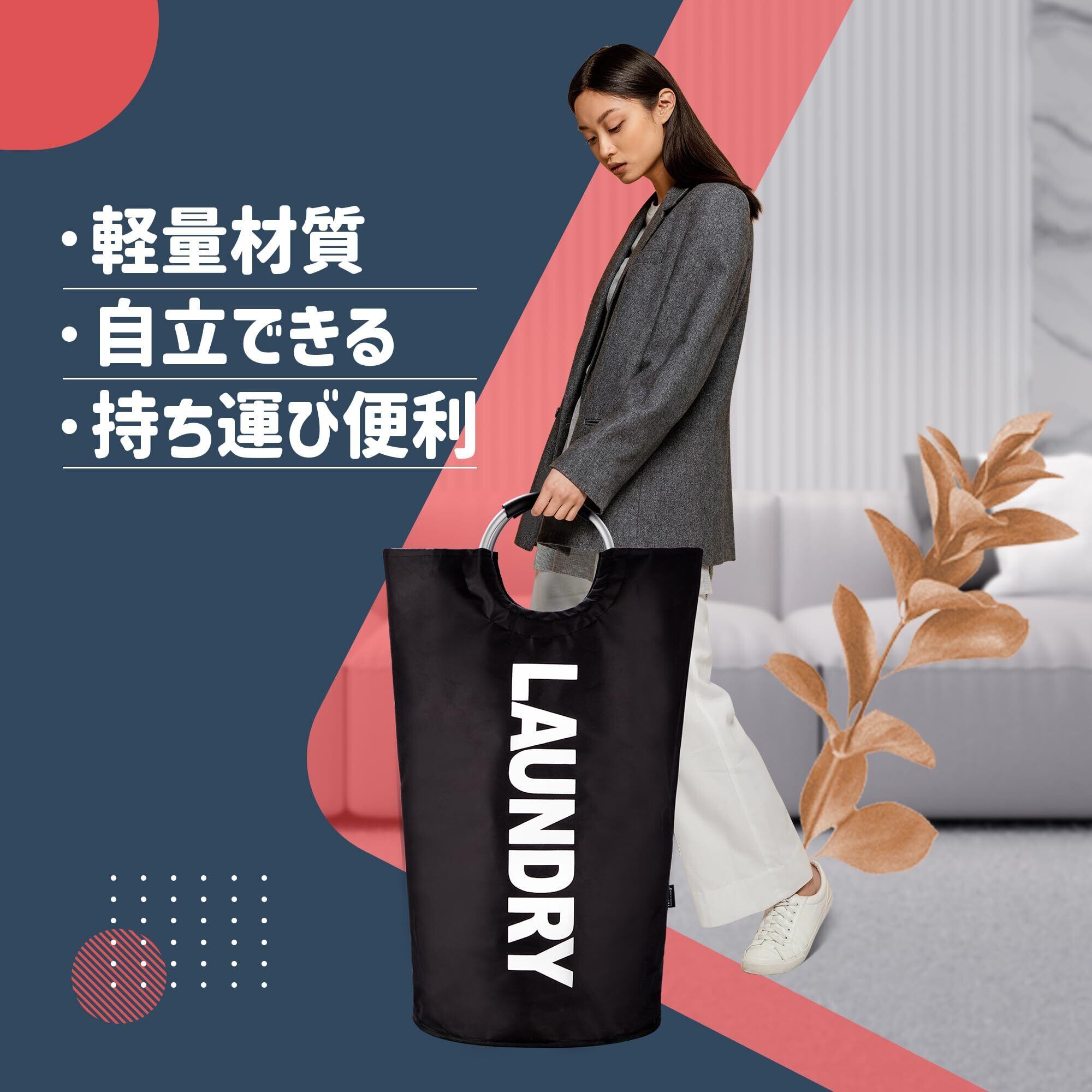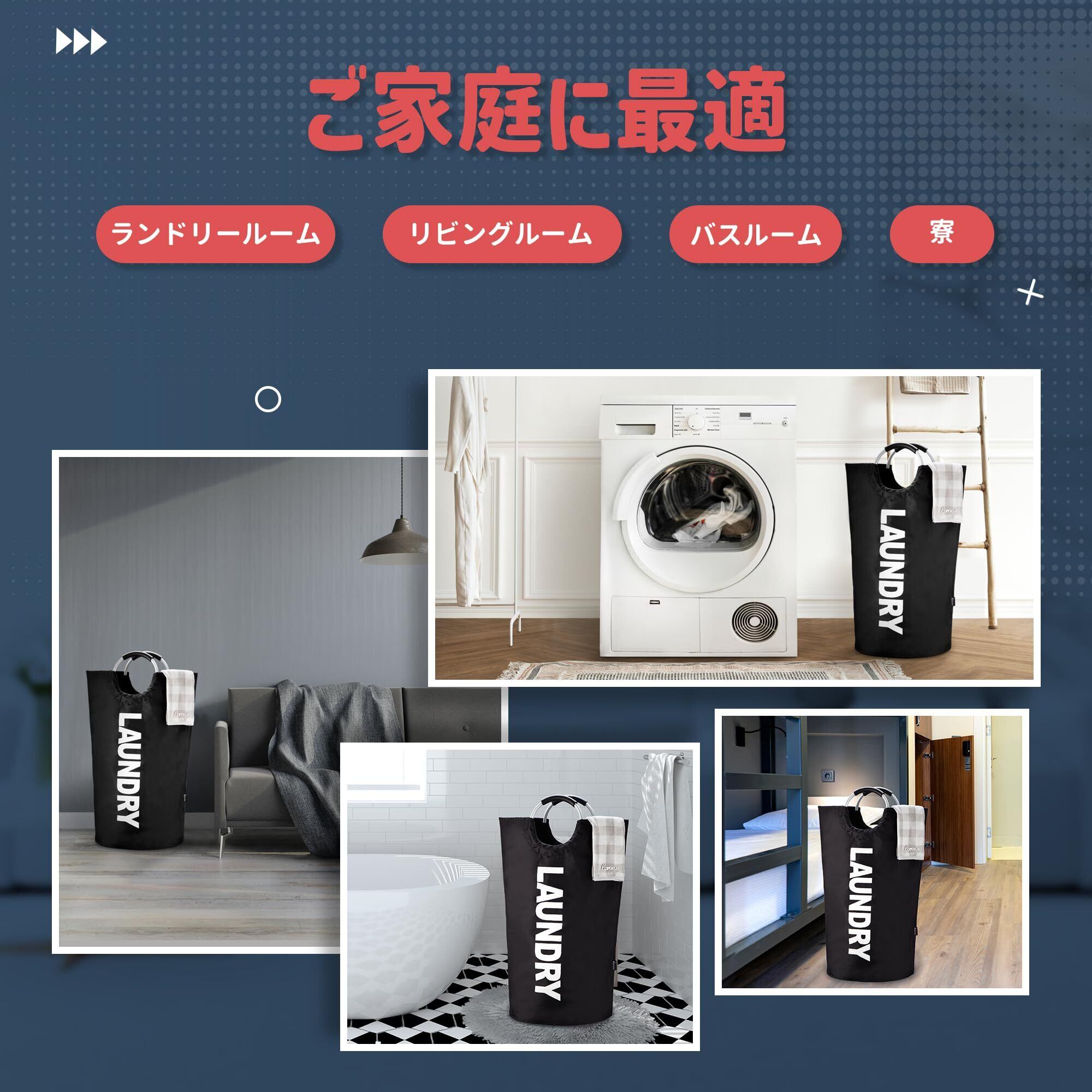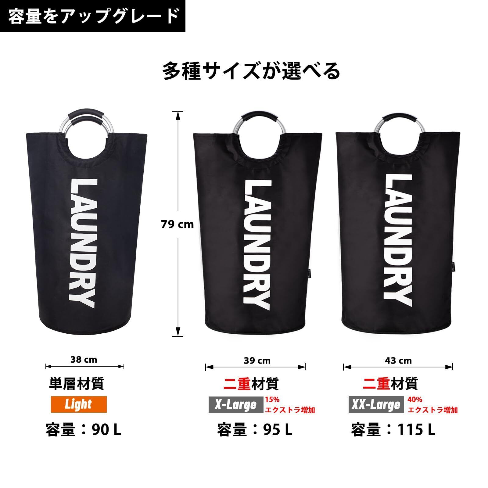 【軽量・アップグレード容量】この洗濯バッグのサイズは直径38cm x 高さ79cmで、容量は82Lからアップグレードして90Lになりました。洗濯かごにコート、シャツ、セーター、タオルなどのご家族すべての衣類を全部入れては可能です。あるいは一人の一週間の衣類をまとめて収納できます。
