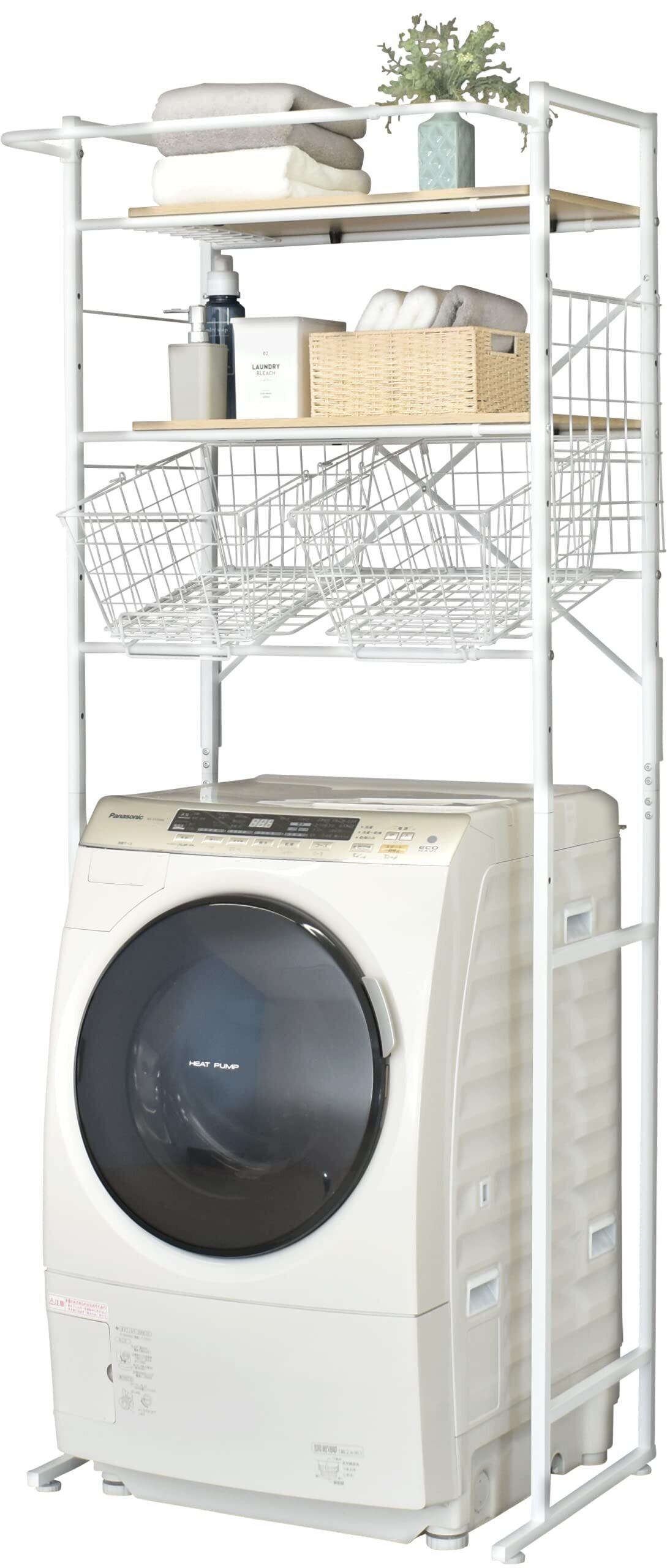 ekans(エカンズ) 棚付きランドリーラック バスケット+棚2段 ホワイト LSH-500W