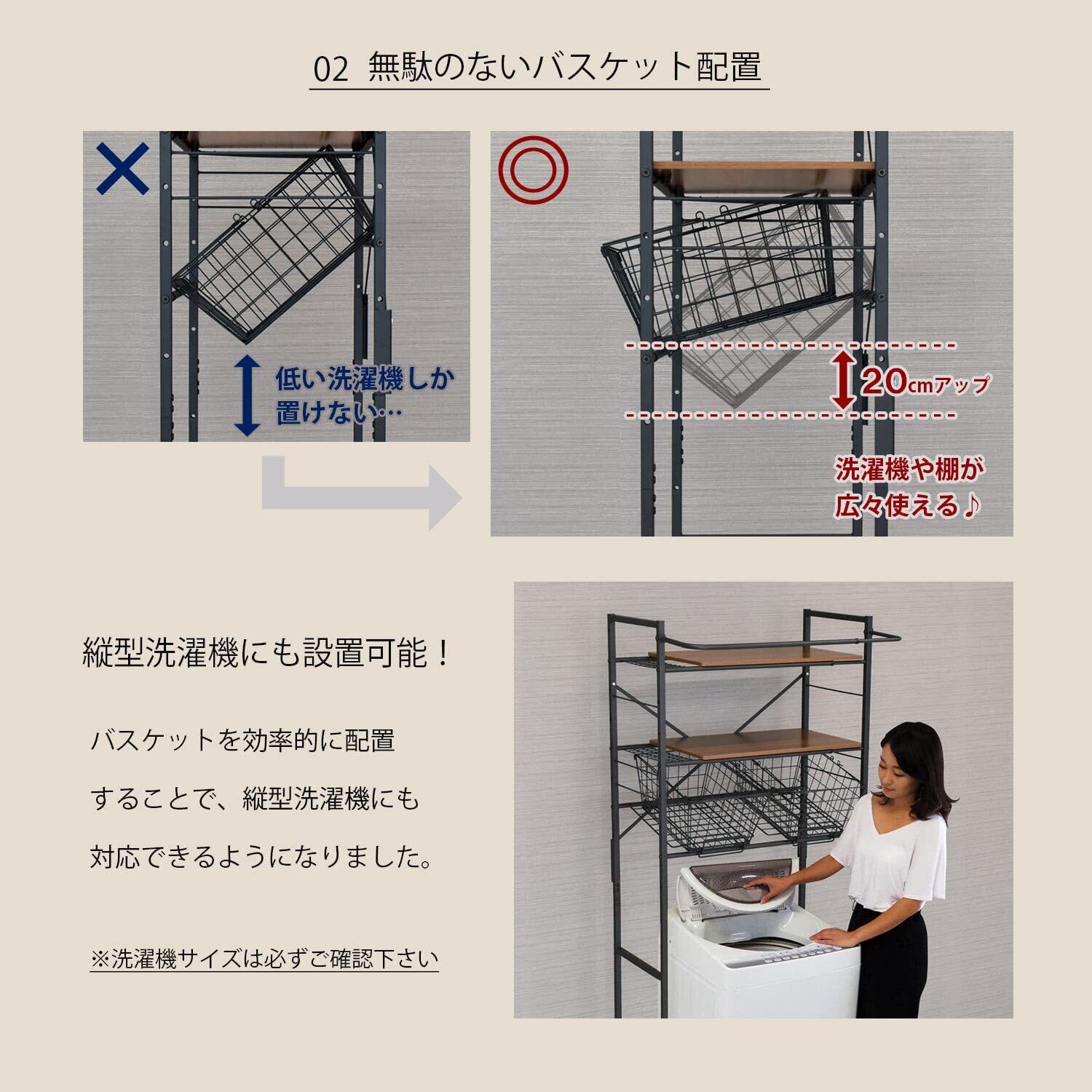 耐荷重:ハンガーバー約5kg、棚1段あたり約10kg、バスケット1個あたり約3kg