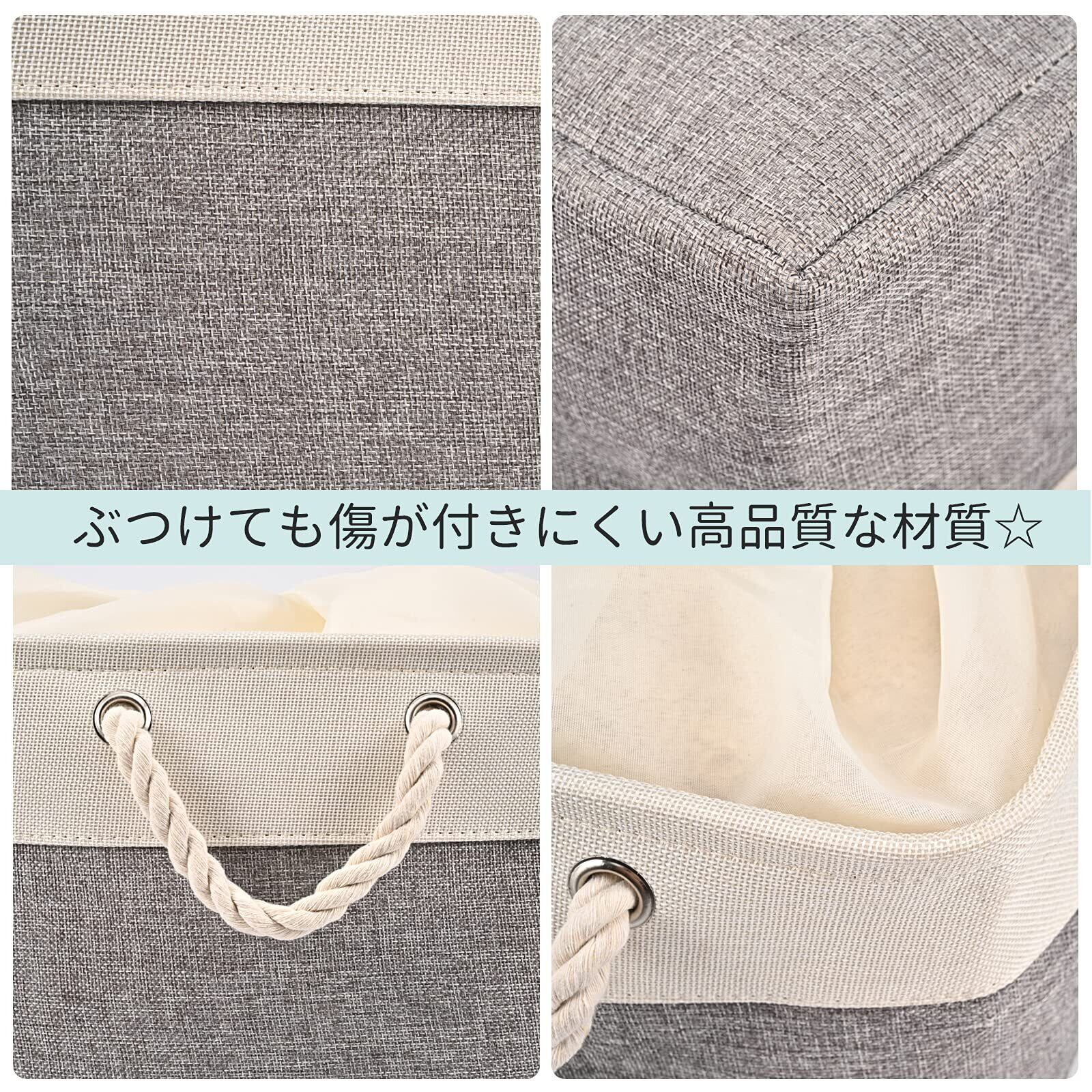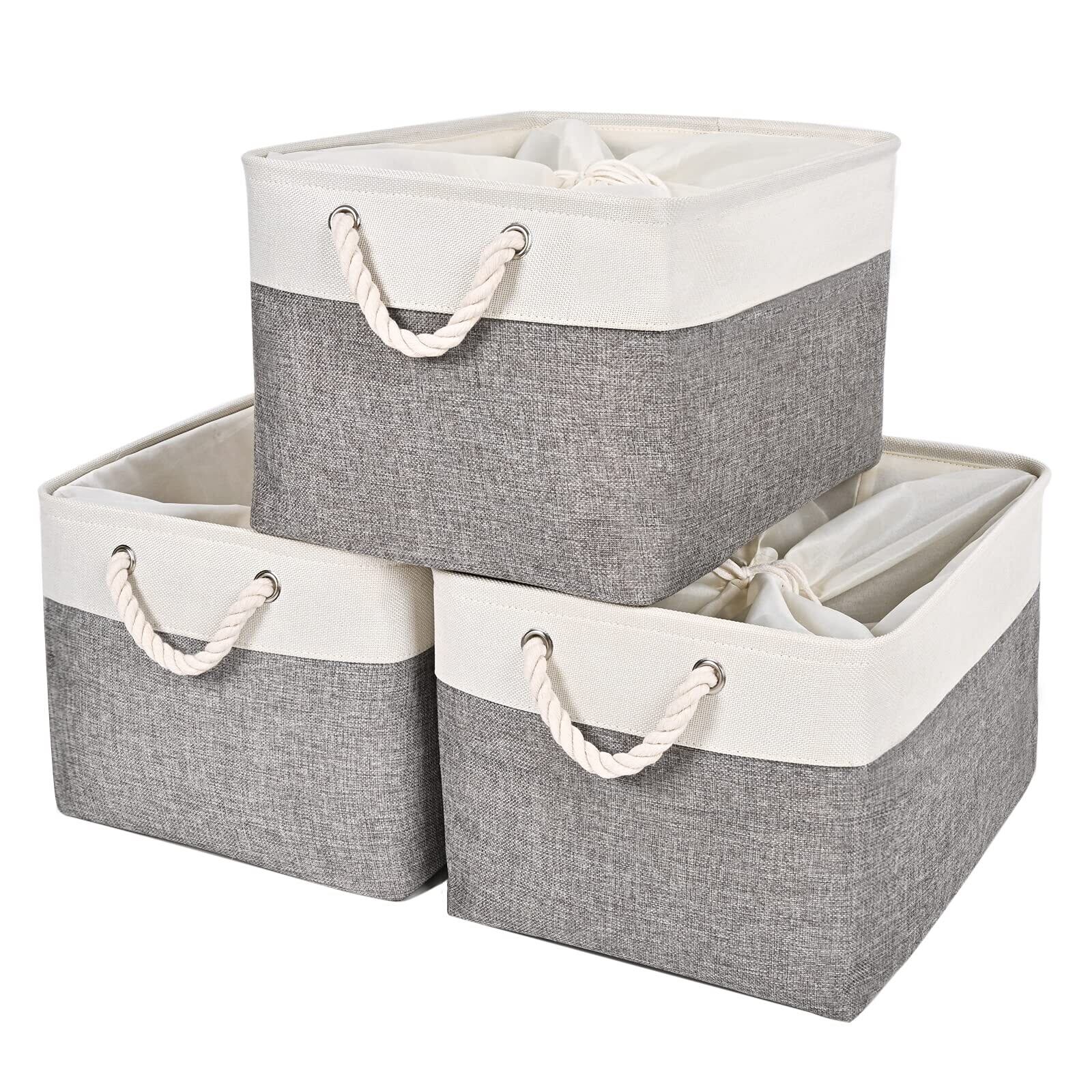 STVICTORY 収納バスケット 3個セット 40×30×24cm 無臭 巾着 取っ手付き オシャレな収納ボックス ランドリー ストレージバスケット 布 洗濯かご インテリア雑貨 衣類 小物収納 引き出し 折り畳み式 綿麻製 防水 防湿 防塵 高耐久性 長方形 (ホワイトグレー)