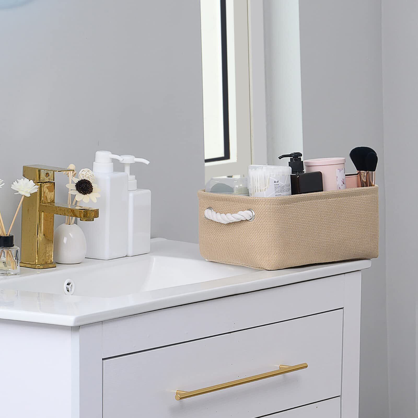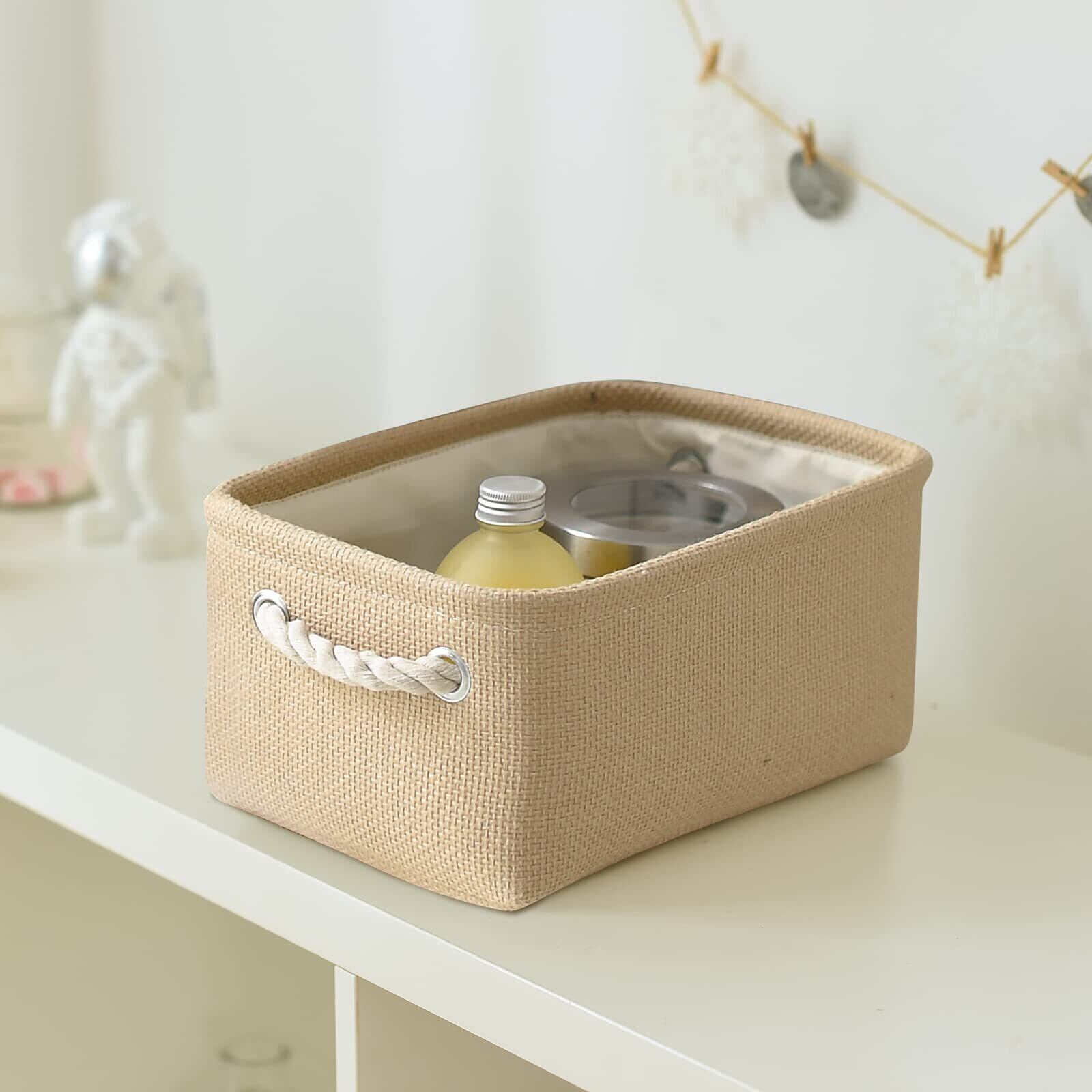 TheWarmHomeかご バスケット 収納 かご 30cm×20cm×13cm カゴ 引き出し収納 収納ボックス 綿麻製 布製 コンパクトデスク収納 玄関収納 おもちゃ収納 折り畳む式 おしゃれなインテリア雑貨 高耐久性 ハンドル付きベージュ