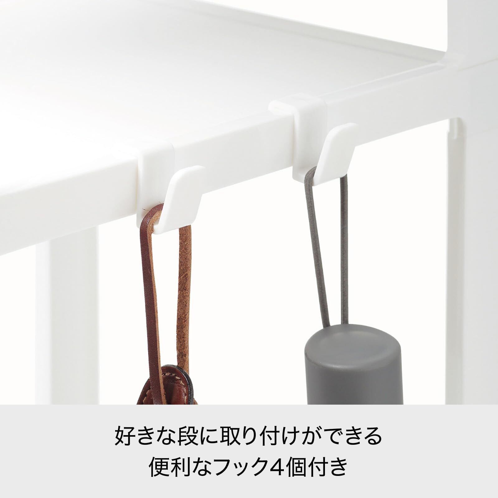 ●靴ベラ等掛けられるフックが4個付いている。お出かけ前に必要なモノが掛けれて便利