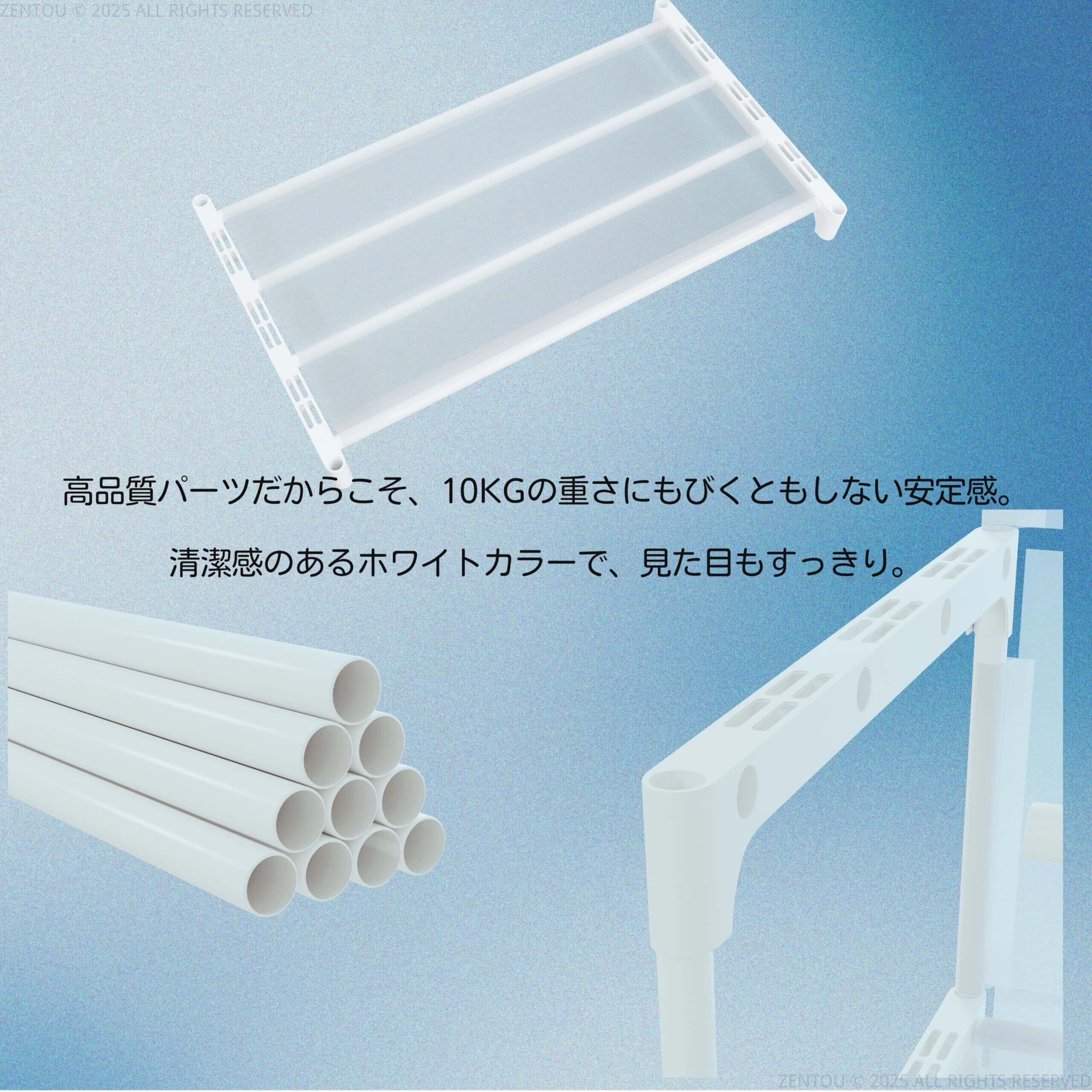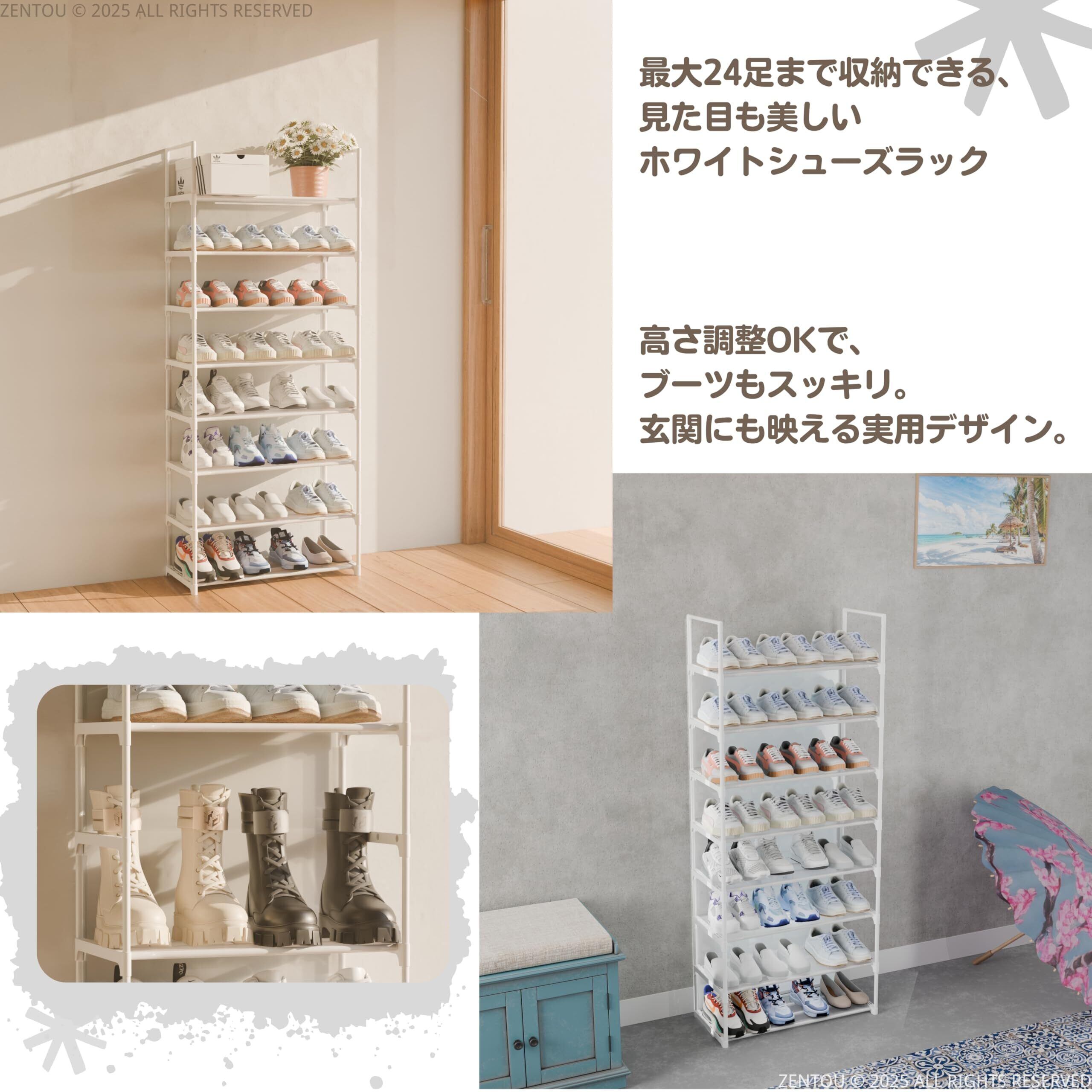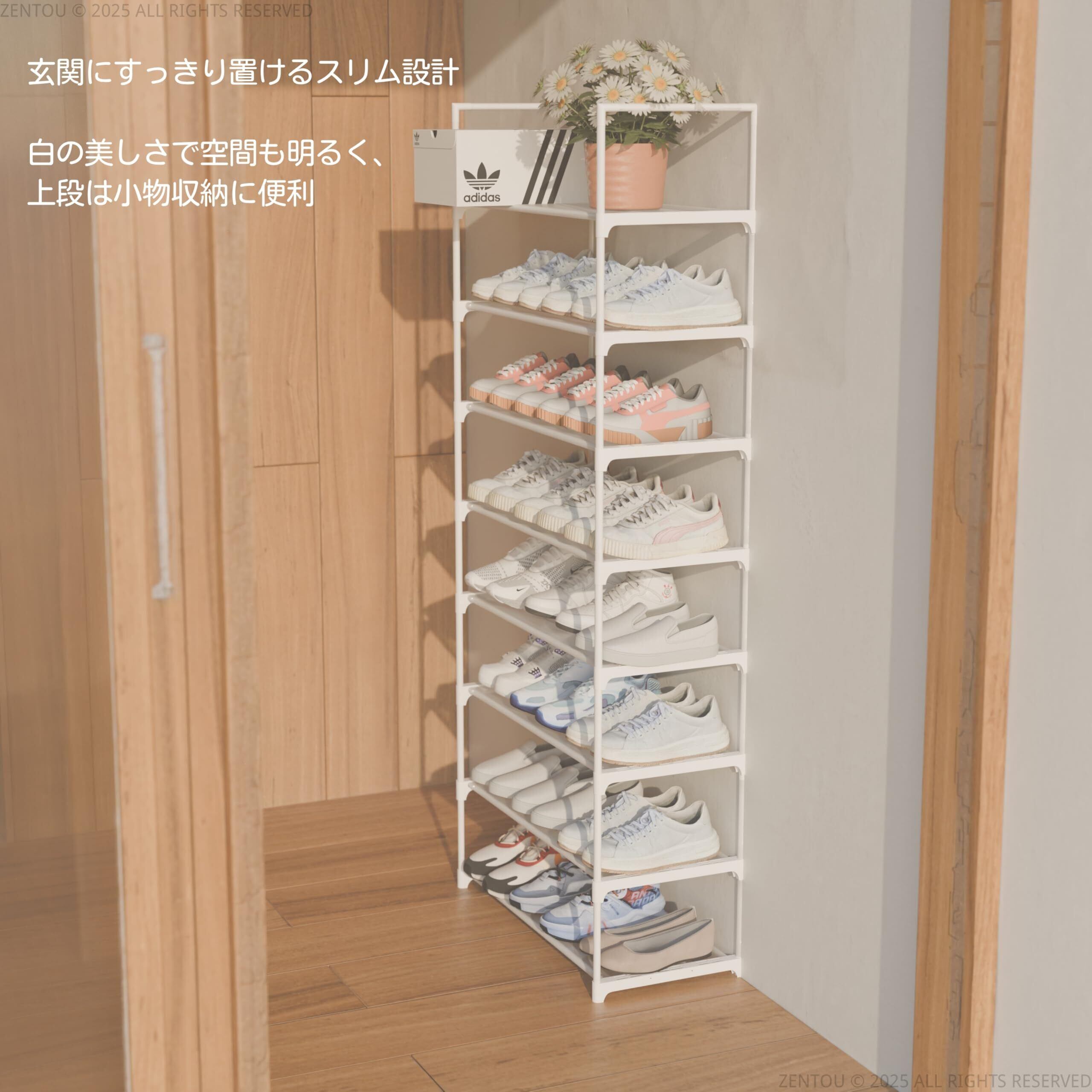 高耐荷重・壁面保護に優れた白いシューズラック スチールパイプとPPシートでしっかり支え、高耐荷重を実現。靴収納だけでなく、本棚や雑貨収納としても使えるマルチシューズラック 白です。壁面接触部分にはPPシートを採用し、壁面を傷や汚れから保護します。靴箱 白やシューズラック おしゃれ 白としてもおすすめです。子供用靴箱 白や靴しゅうのう ラック 白としても最適です。スリムシューズラック 白や靴箱 高さ調節可能 白としても使えます。