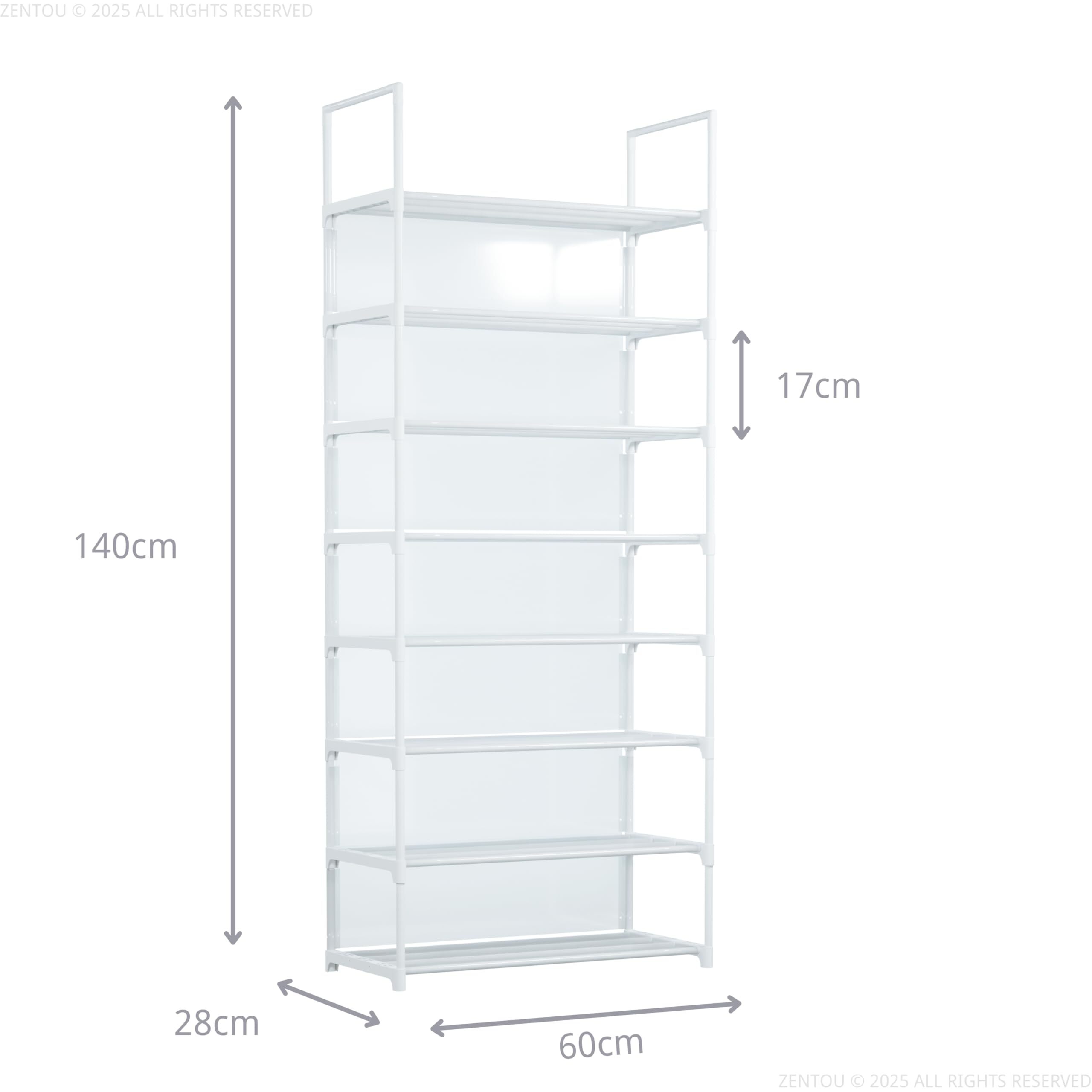 8段ワイド 白 シューズラック スリム 狭い玄関対応 玄関収納 大容量20~24足 おしゃれ 白棚 靴箱 下駄箱対応 組立簡単 壁面保護 防汚 防水 半透明PPシート付 幅60×奥行28×高さ140cm