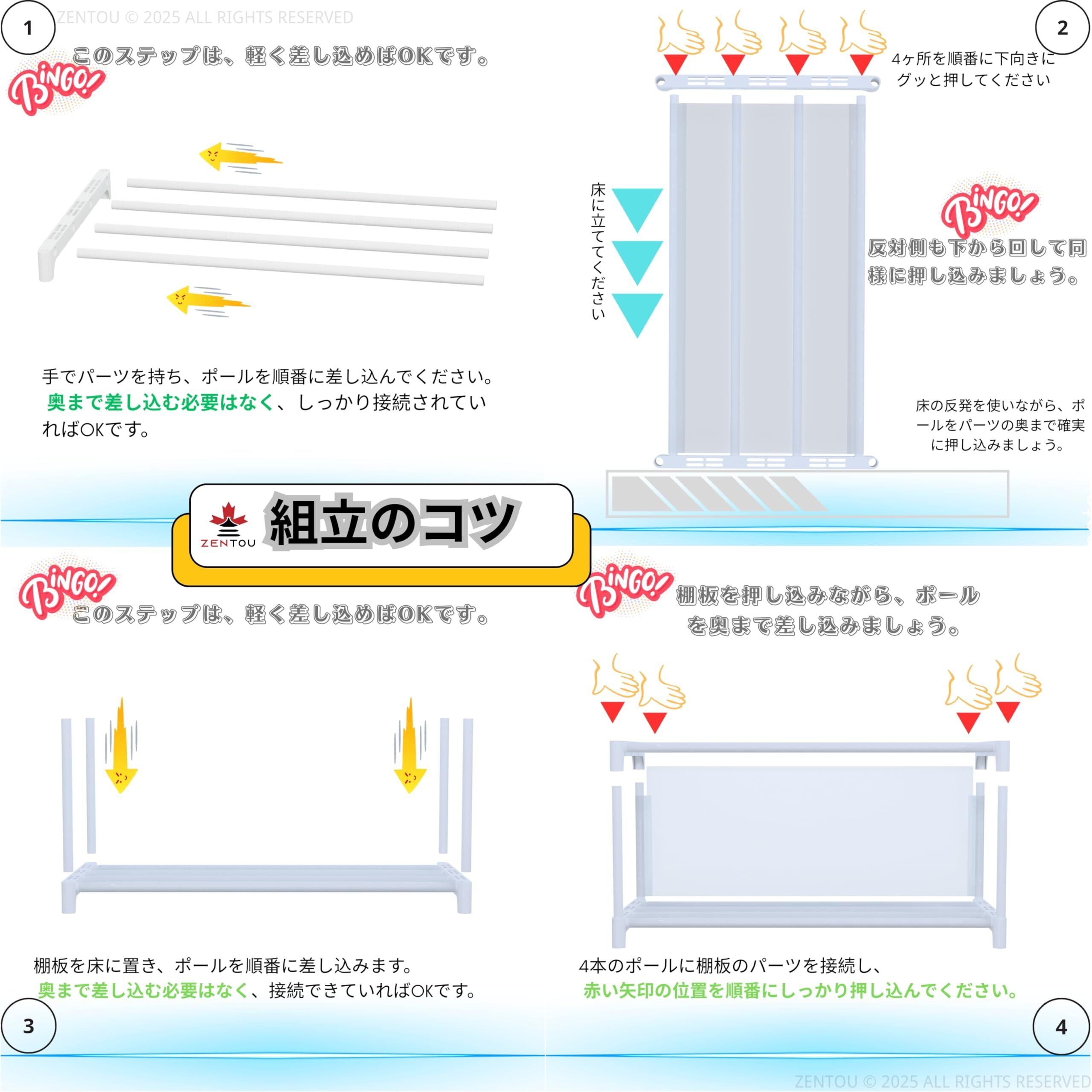 簡単組立・工具不要のシューズラック 白 スチールパイプ、PPジョイント、PPシートを使用し、工具不要で簡単に組み立てられます。女性一人でも付属の手袋で約10〜20分で完成。何度でも分解・再組立ができ、模様替えや引っ越しにも便利です。靴しゅうのう 玄関 白、靴棚 白、靴箱 上収納 白、くつばこスリム 玄関 白、シューズ収納 大容量 白、省スペース 靴箱 白、シューズ ラック 白としても活用可能です。