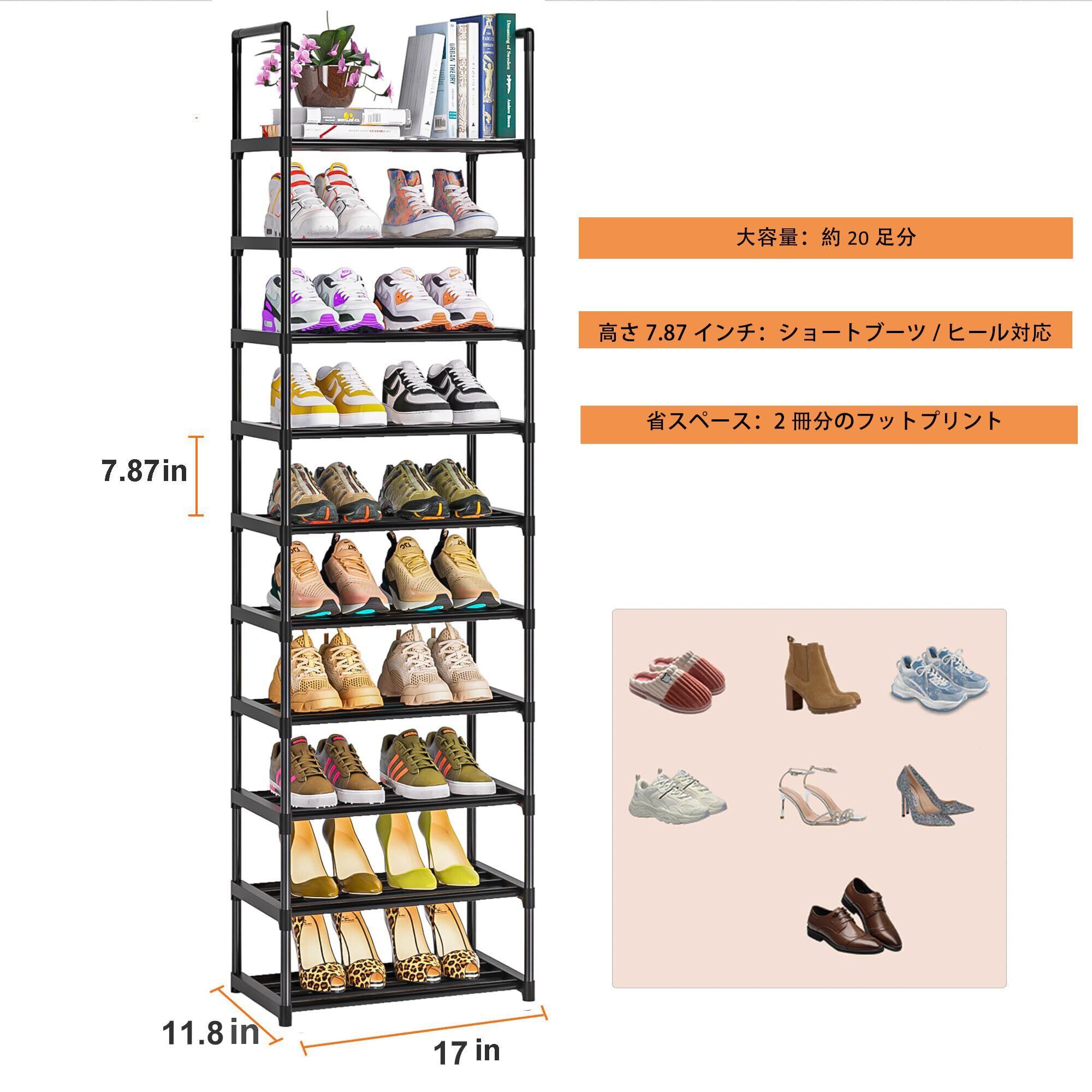 収納・省スペースのシューズラックオーガナイザー: 他のシューズラックより幅狭です。背が高く幅の狭いシューズラック棚は、小さなスペースに最適なサイズで、メタル製シューズラックは、より多くの靴を収納することができます。