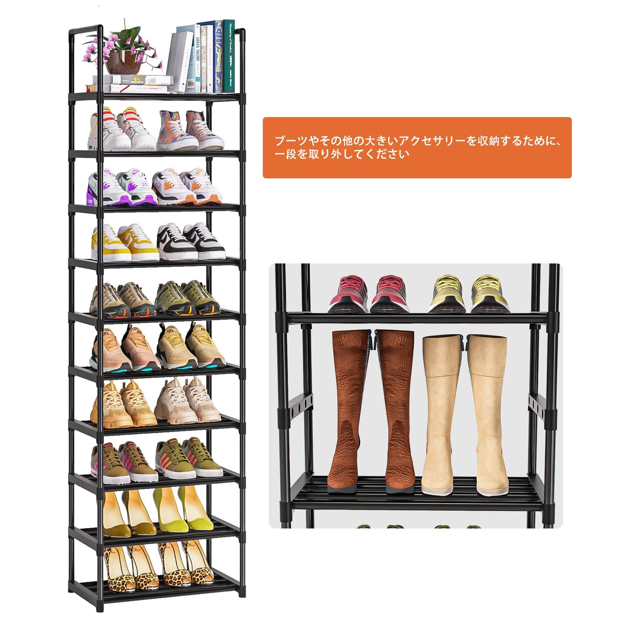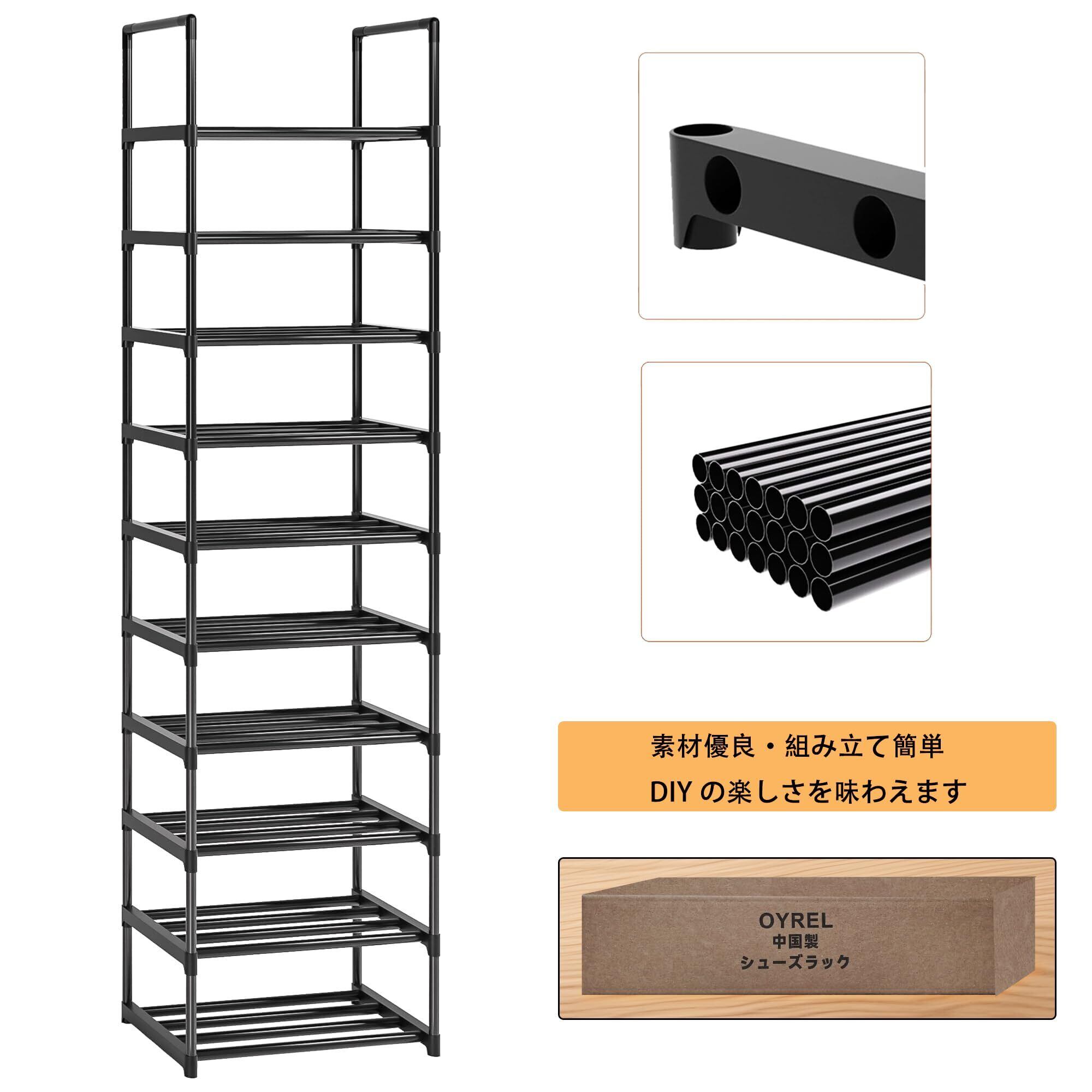 OYREL シューズラック 10段 金属製 頑丈 靴 ラック|スリム省スペース 20足収納可能 玄関/クローゼット対応 靴棚 組立簡単 ブラック 幅43×奥行30×高さ200cm