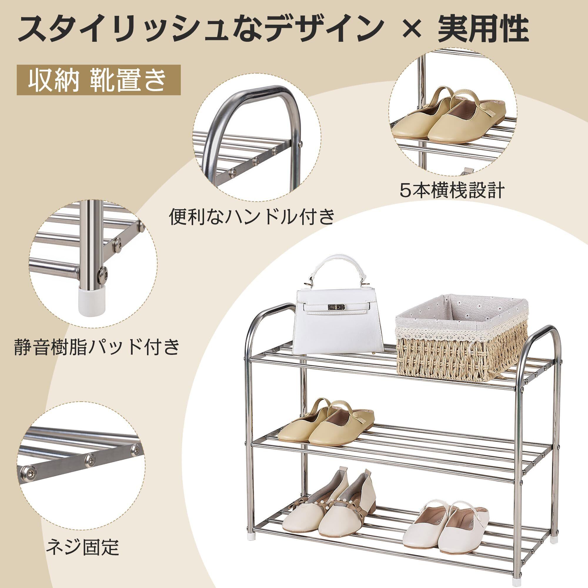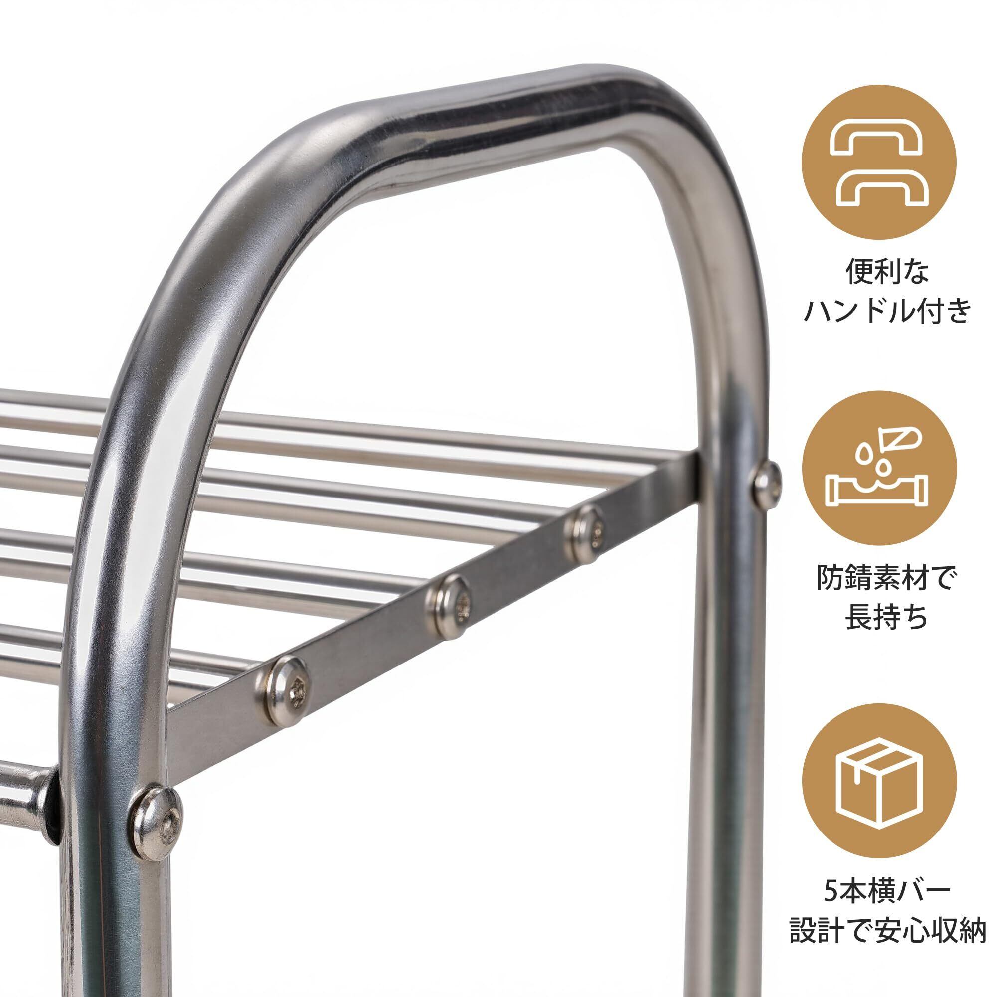 【材質】 本製品のシューズラックは、高品質のステンレスパイプを使用しており、サビに強く、たわみにくい構造となっています。