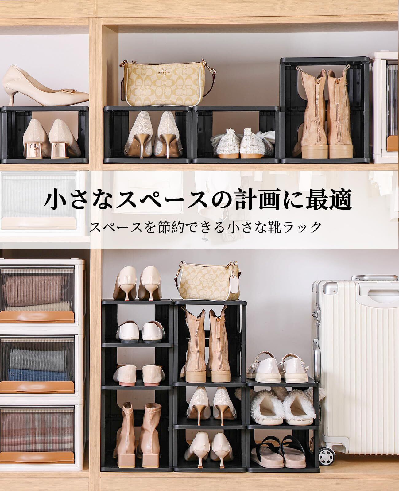 【省スペースシューズラック】シューズを垂直に保管することで、より小さいスペースでより多くの靴を置くことができ、ブーツやハイヒール、スニーカーを置くことができます。 従来の靴収納方式と比べ、スタンドシューズラックは多くのスペースを節約できます。 玄関、ドア口、クローゼット、シューズボックス、ベッド下、クローゼット、リビング、トイレなどスペースで、より多くの靴を入れることができます。