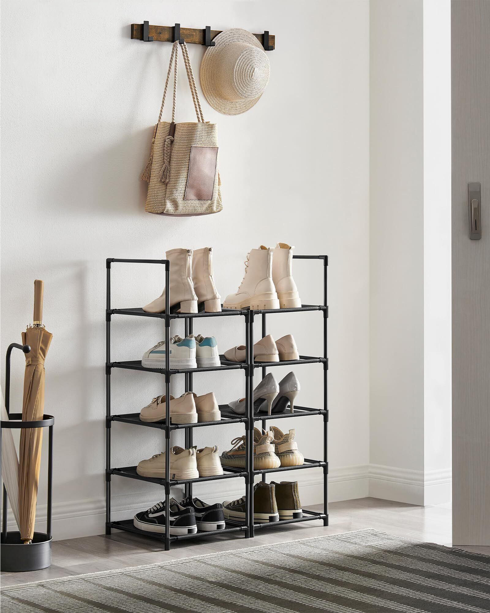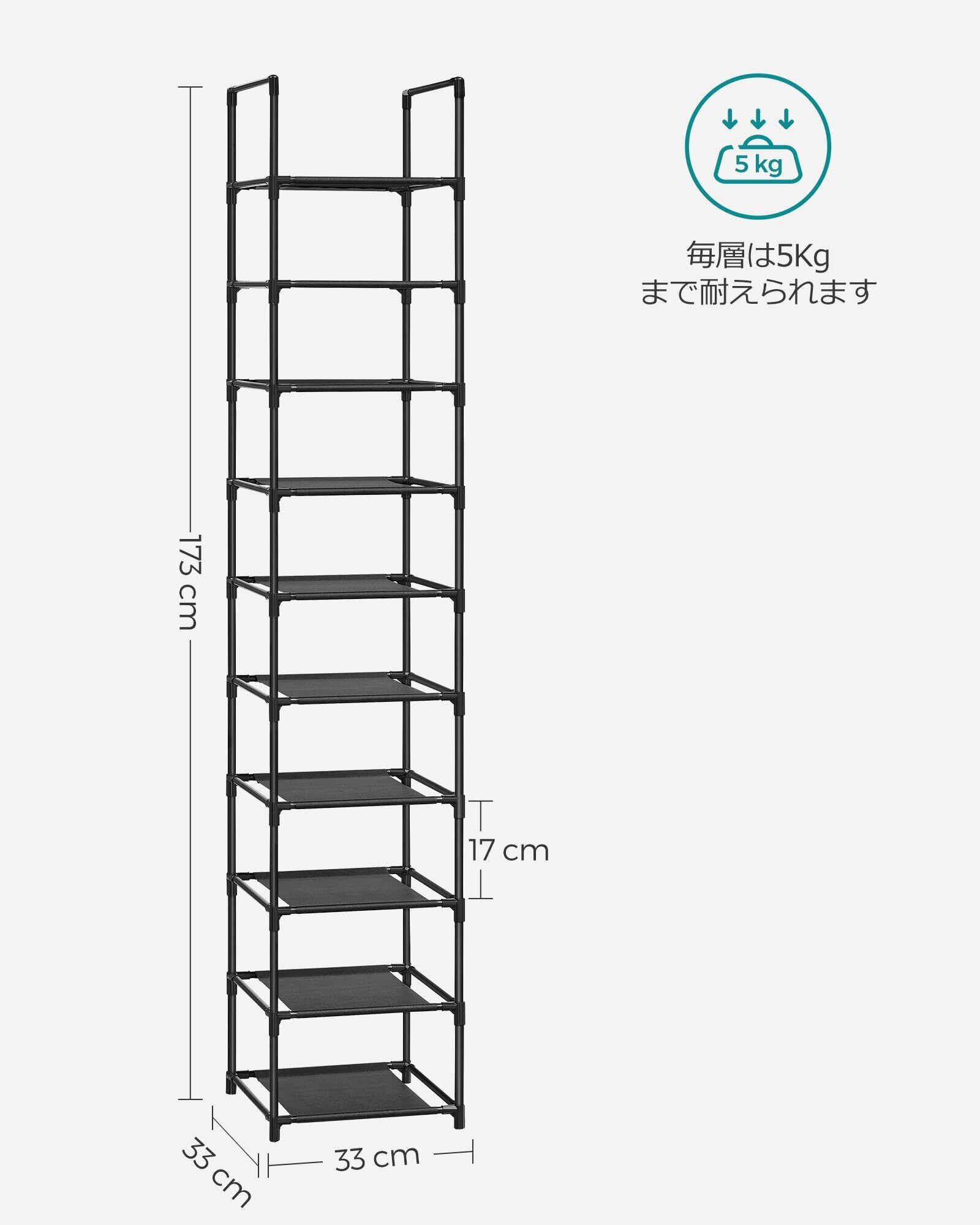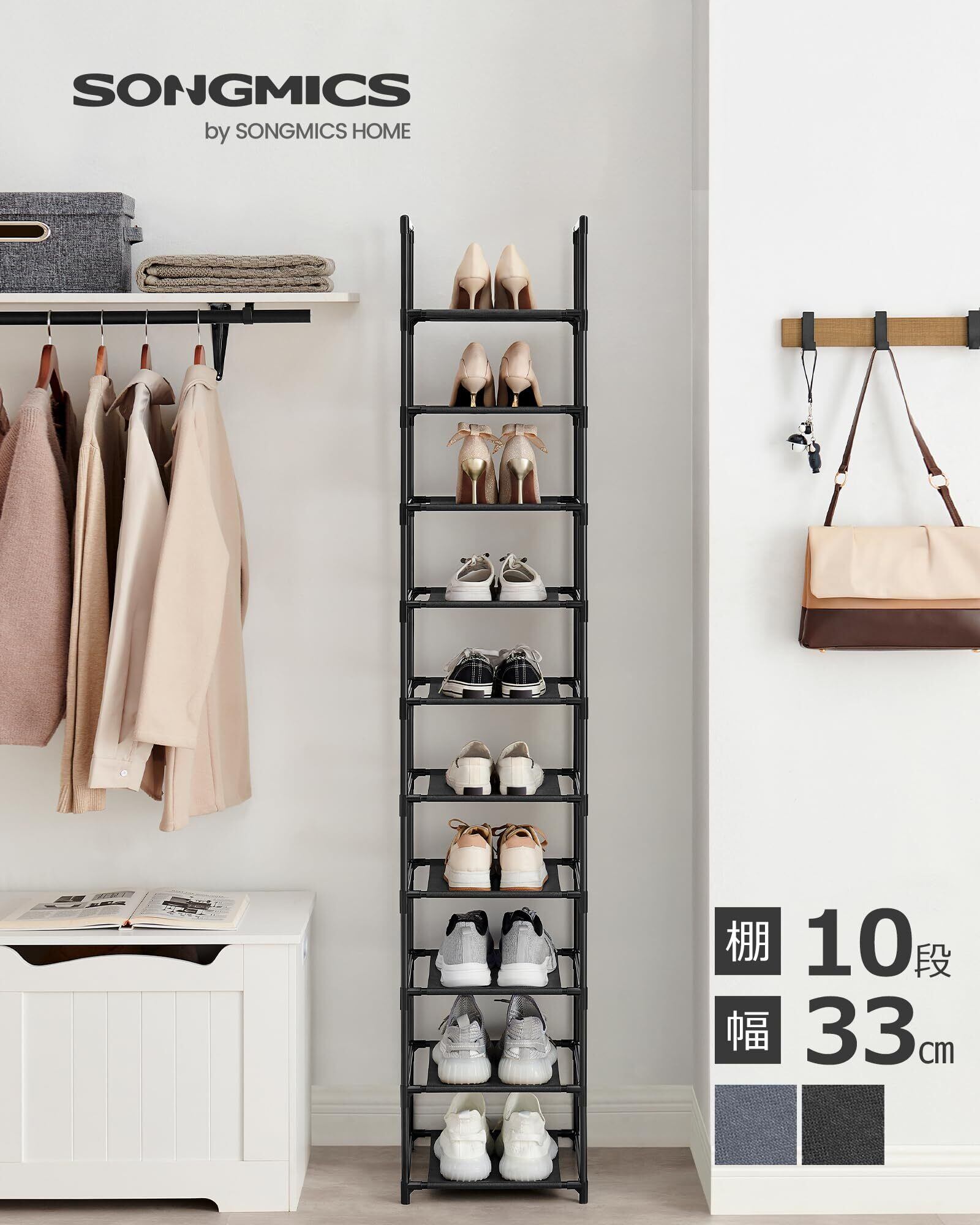 SONGMICS シューズラック 10段 靴棚 下駄箱 省スペース 分割可玄関すっきり 奥行スリム33cm 玄関に靴を効率収納 LSR110B02