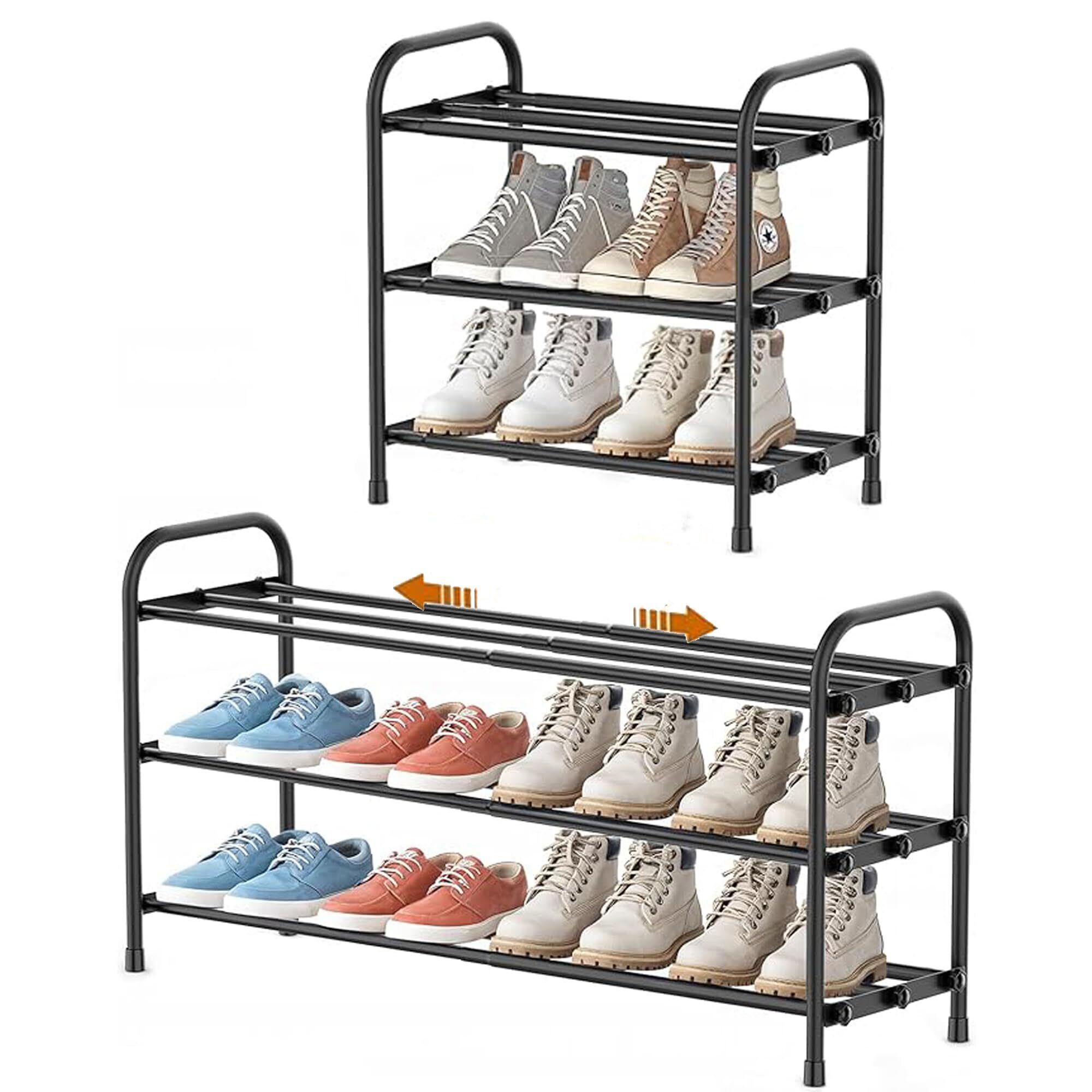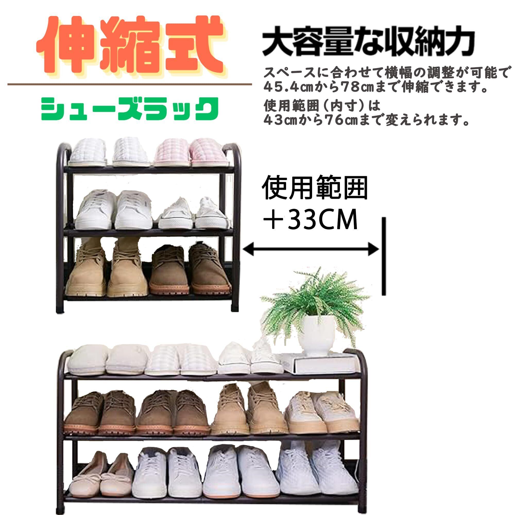 Ruisyaシューズラック 新モデル伸縮靴棚 無段階調整可能 玄関靴収納2段3段ラック 靴箱 スリム 靴置き 下駄箱 スリッパラック 省スペース おしゃれ(3段)