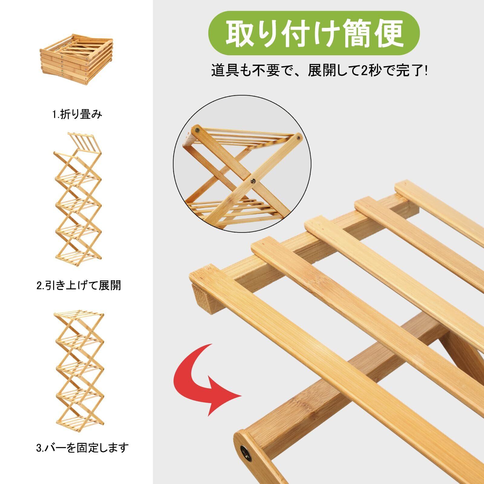 【天然竹の高級素材】: この竹製シューズラックは天然竹を使用し、エコで健康的。竹の独特な木目がナチュラルな美しさを演出し、インテリアに自然に溶け込みます。防カビ・防虫加工済みで長期間清潔を保ちます。軽量で美しく、スペースを取らず、玄関や部屋にシューズラックとして最適です。