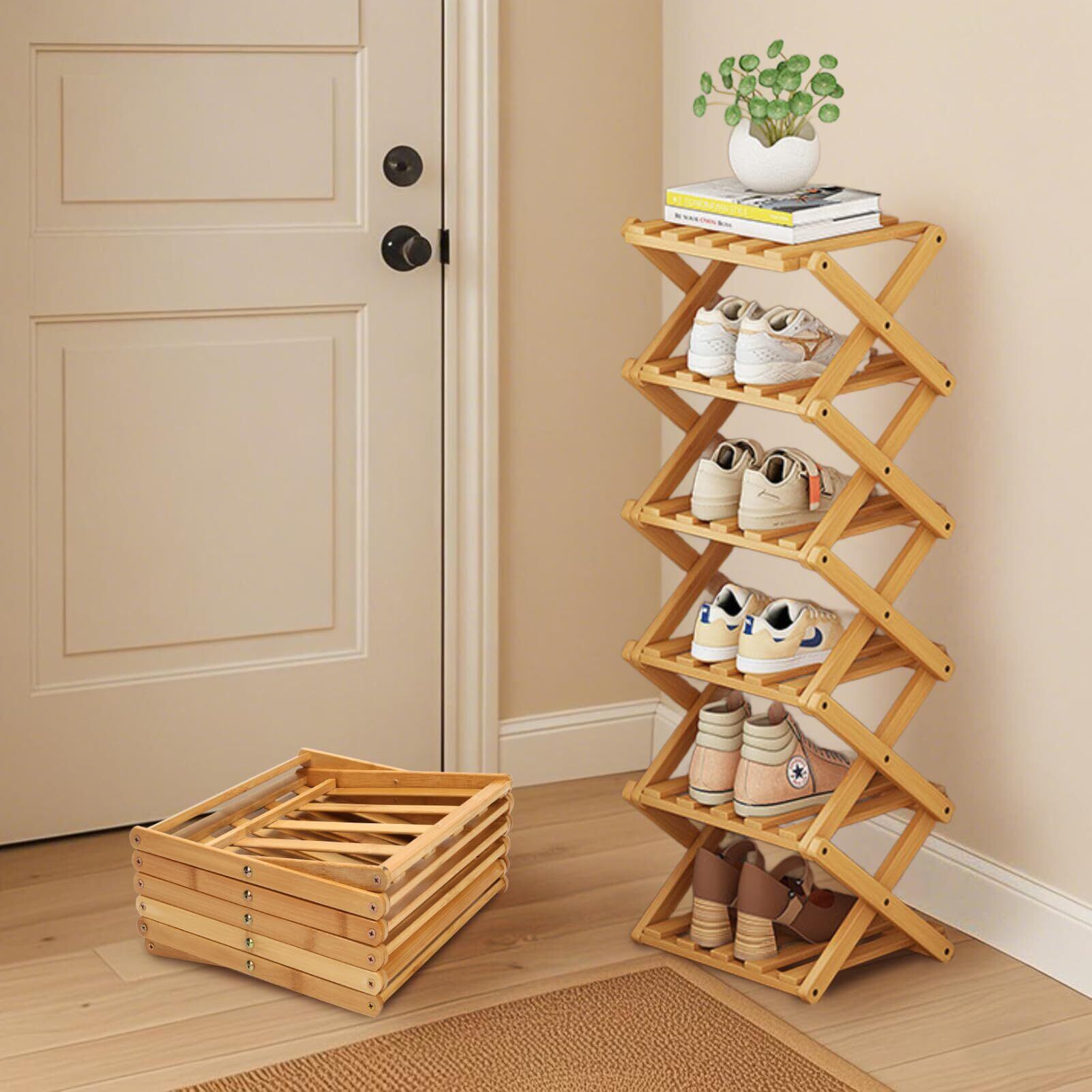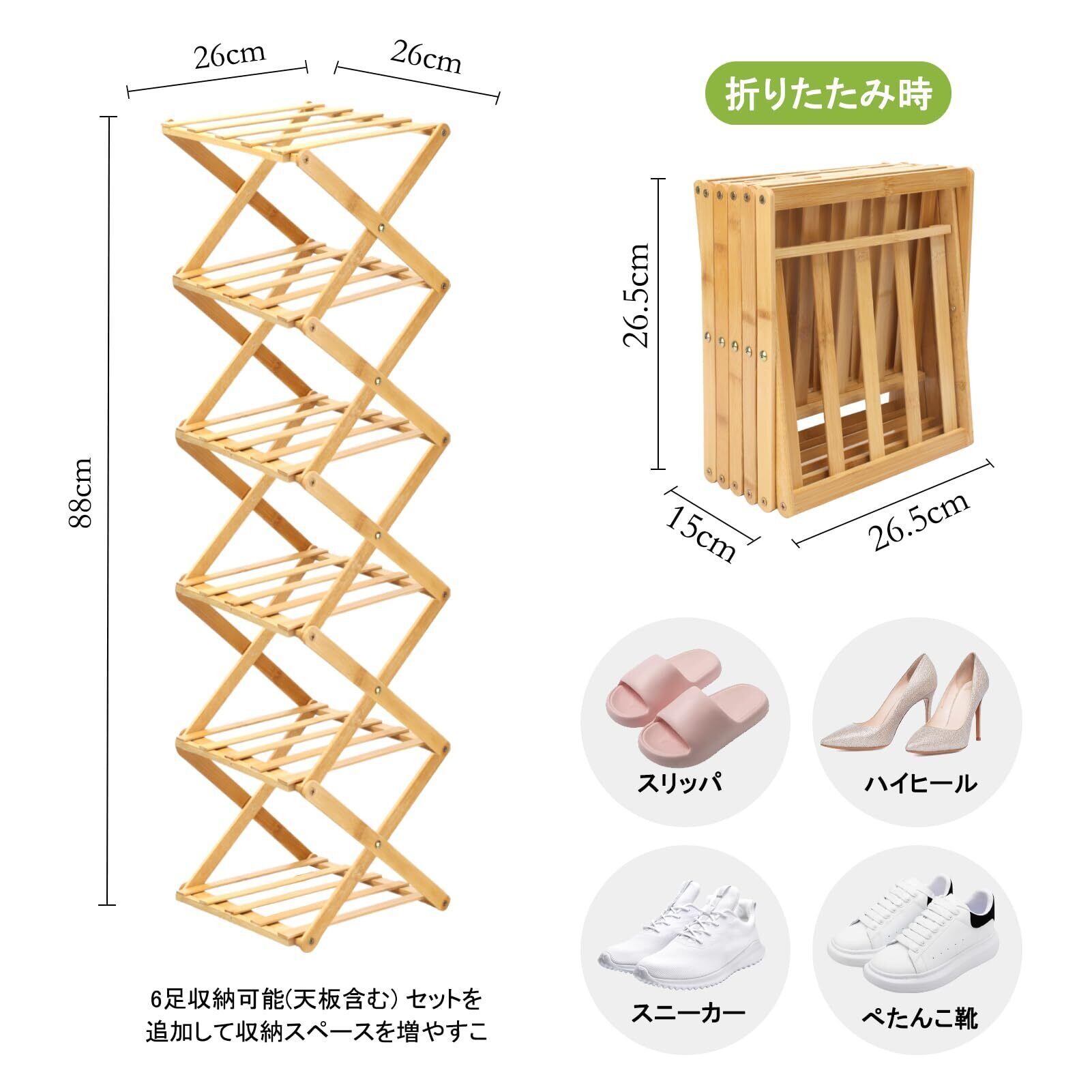 FYY シューズラック スリム 折りたたみ可能 靴箱 靴棚 下駄箱 靴 収納 シューズボックス 完成品 玄関収納 省スペース コンパクト 収納棚 靴置き 竹製 軽量 すき間 幅26cm 奥行26cm ひとり暮らし 組立不要