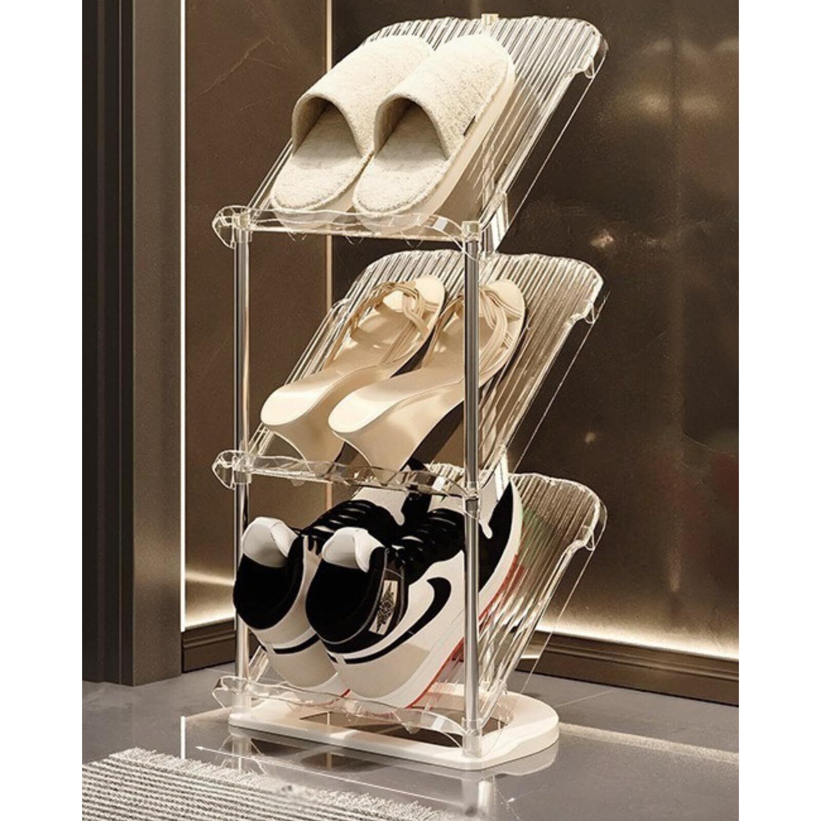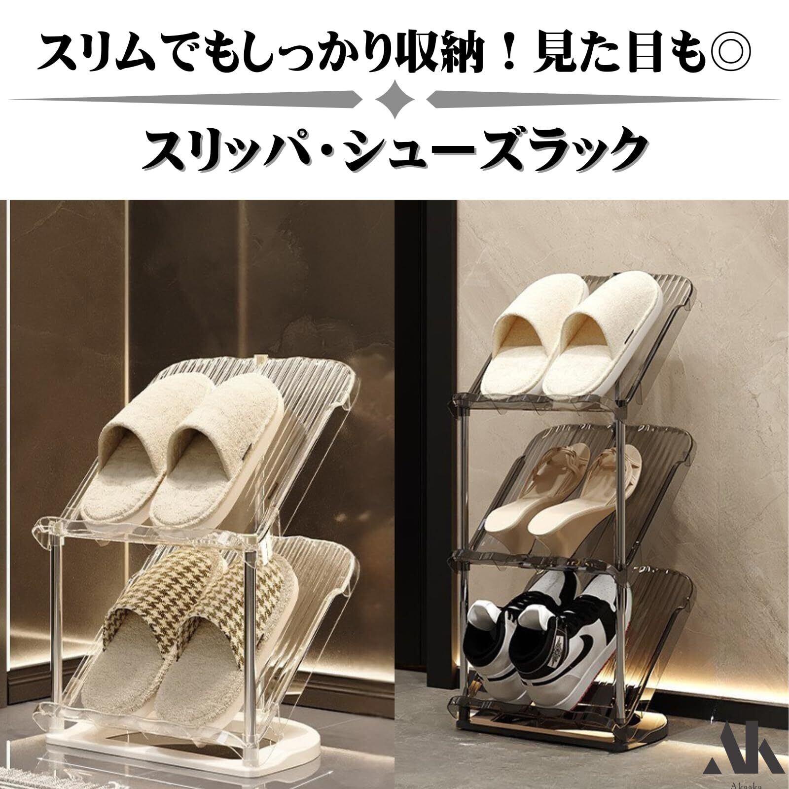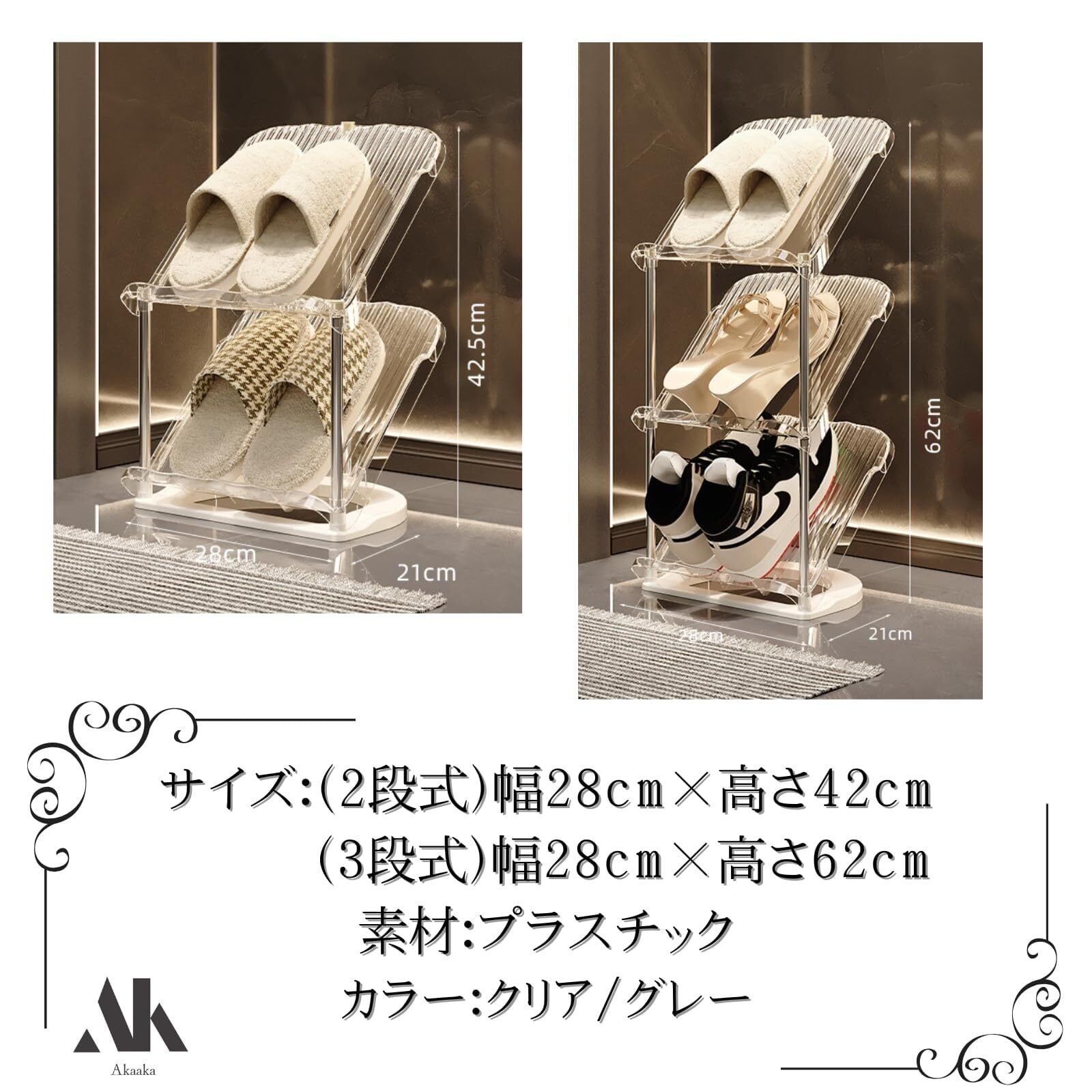 Akaaka スリッパラック 靴置き シューズラック 靴収納 省スペース 斜め収納 おしゃれ 玄関用 (クリア・3段)