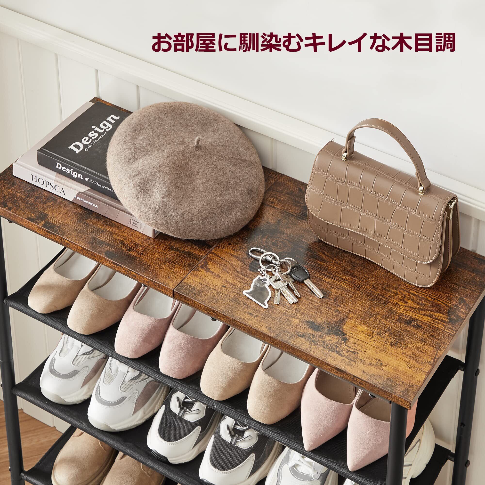 VASAGLE シューズラック 下駄箱 靴 収納 スリム 靴箱 省スペース 靴置き 靴収納 靴収納ラック おしゃれ 4段 大容量 木製 玄関収納 奥行30㎝ 高さ71cm ヴィンテージ 玄関 棚 通気性 ポリエステル布 LBS035