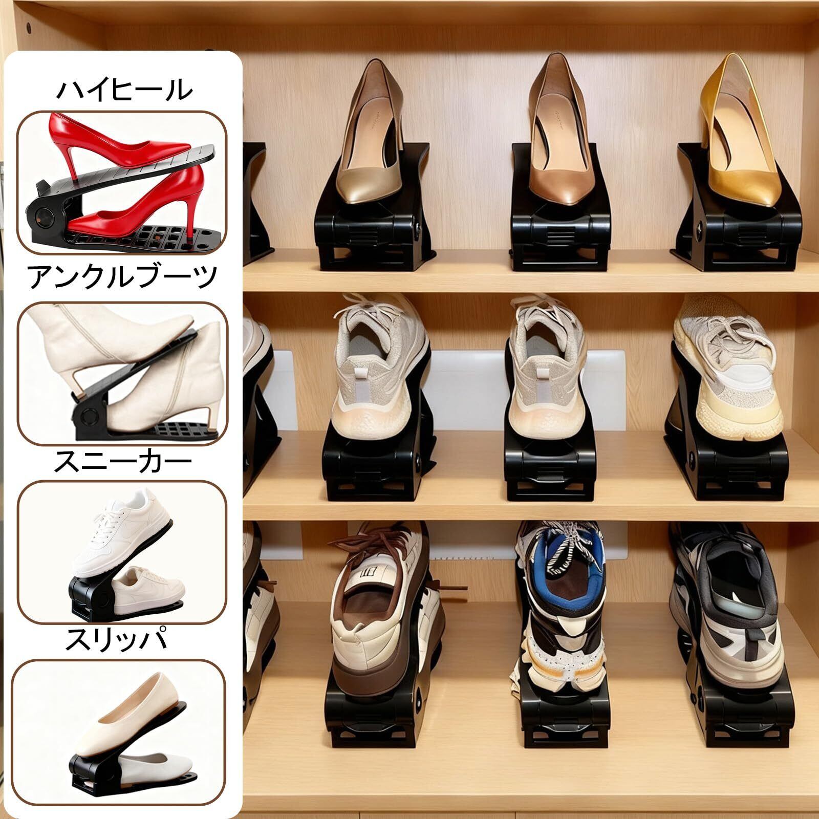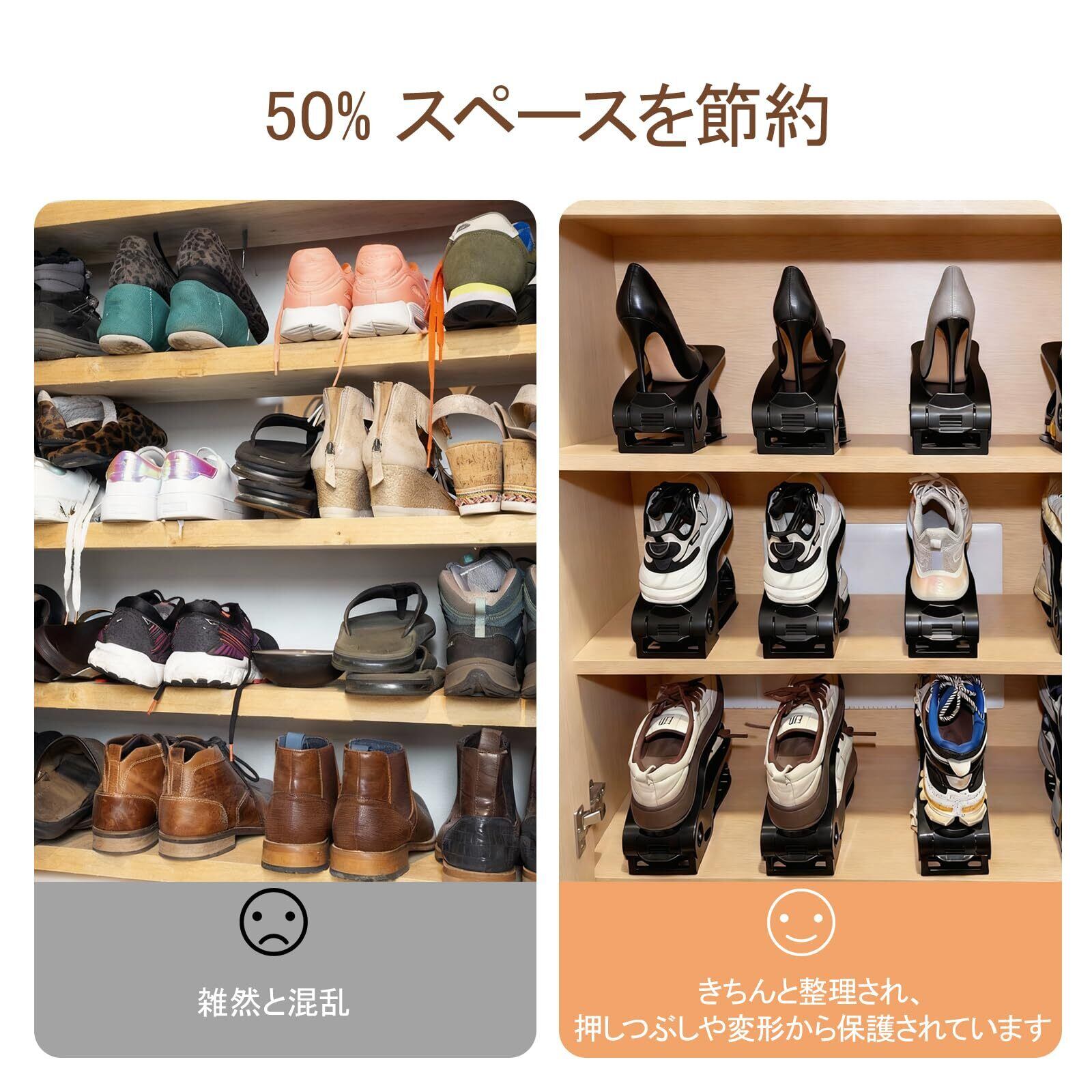【用途広く】収納空間全体はスッキリ綺麗になれる。寝室、クローゼット、ワードローブで。家庭用および公共用に適しています。狭い下駄箱・靴箱内の靴を最大限に省スペースでコンパクトに整理整頓できる便利収納グッズ!