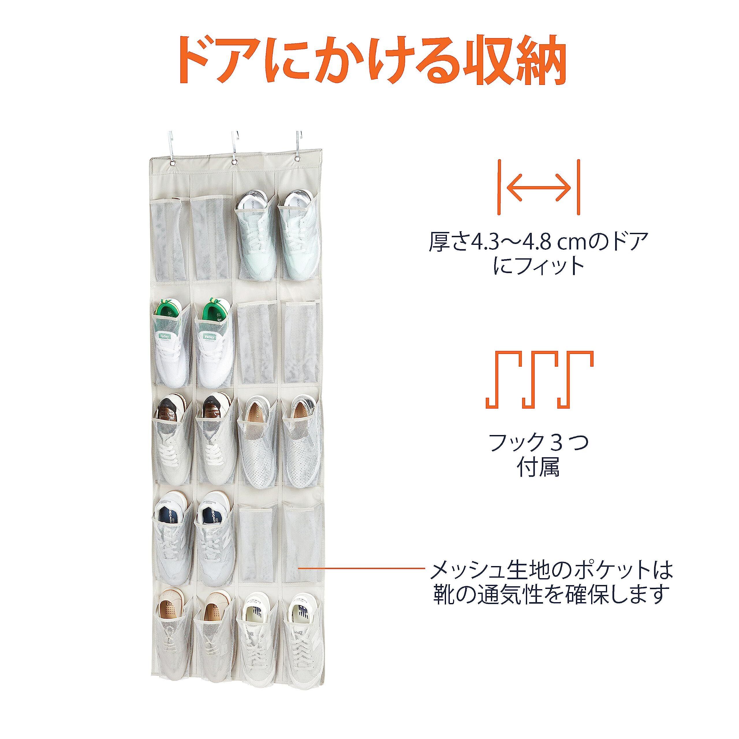 Amazonベーシック シューズケース ウォールポケット 靴収納 ドア掛け型 Lサイズ 20ポケット, ライトグレー