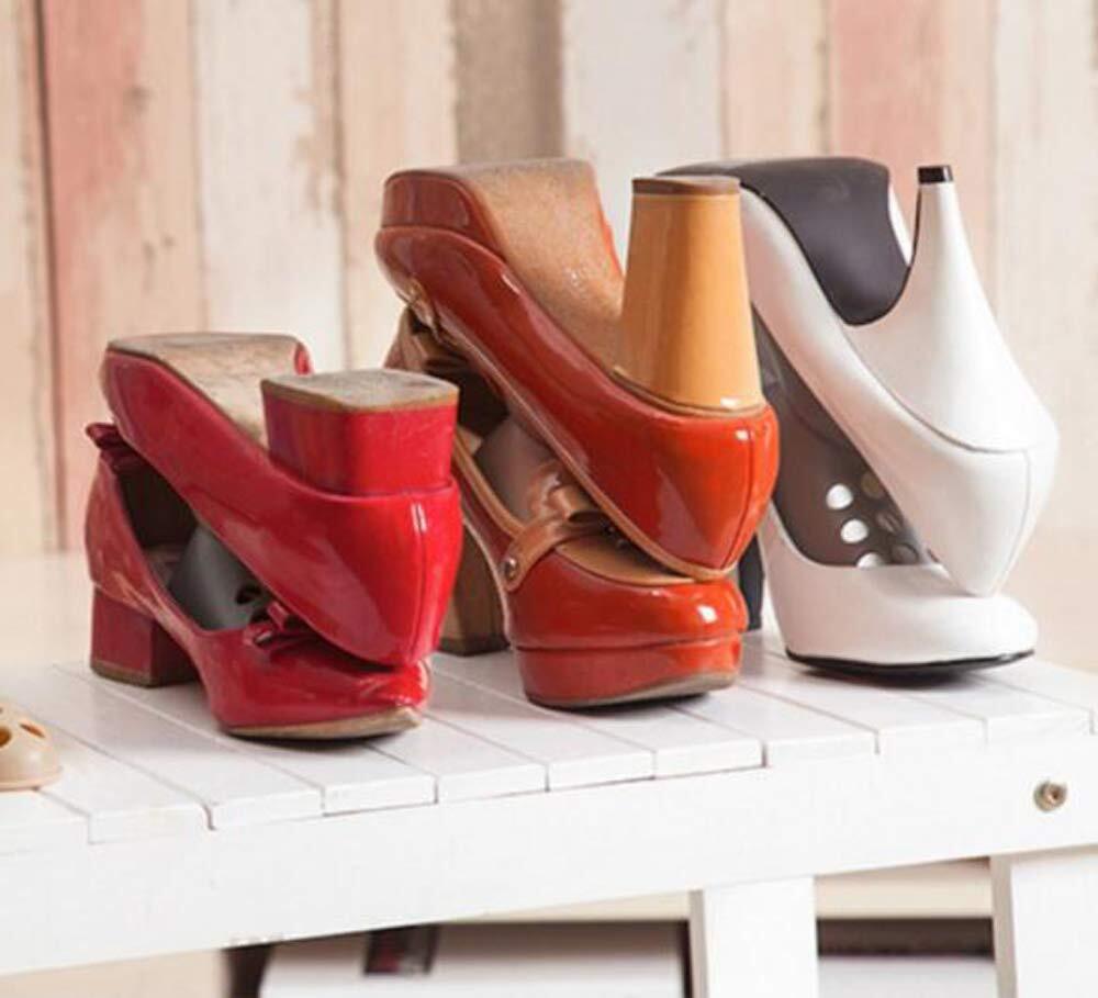 HJ 靴ホルダー ハイヒール収納 シューズホルダー 省スペース 下駄箱に収納 (ベージュ, 4ペアセット)