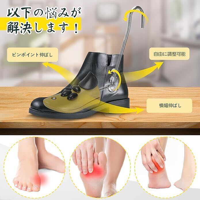 【きつい靴&痛い靴の悩みを解消】かかとが擦れて痛い、つま先が圧迫される、外反母趾で歩くのが辛い…そんな「きついブーツ」と「痛いブーツ」の悩みを抱えている方に、このブーツストレッチャーは最適です。お気に入りのブーツを無理なく調整し、あなたの足形にぴったりとフィットする快適なサイズに整え、悩みを根本から解消します。