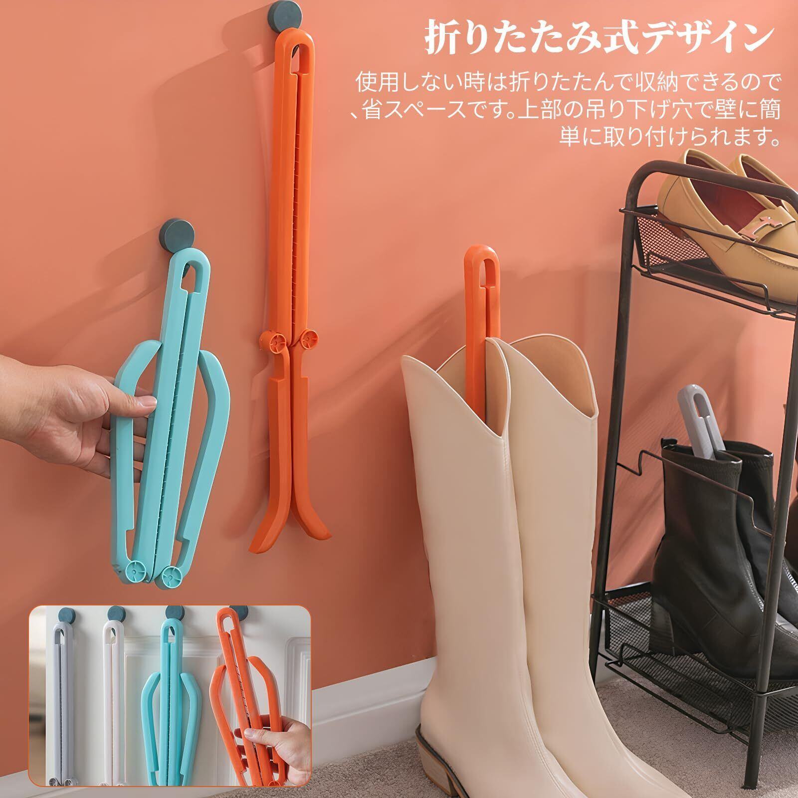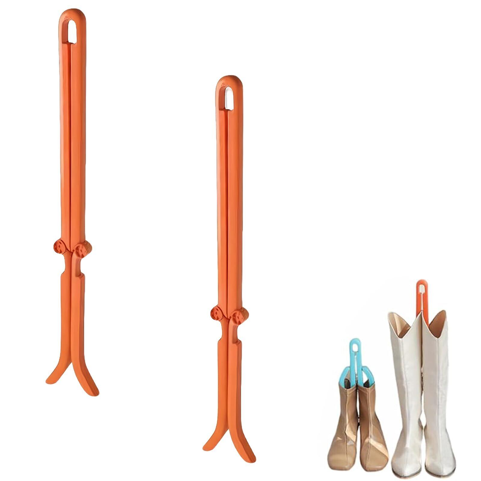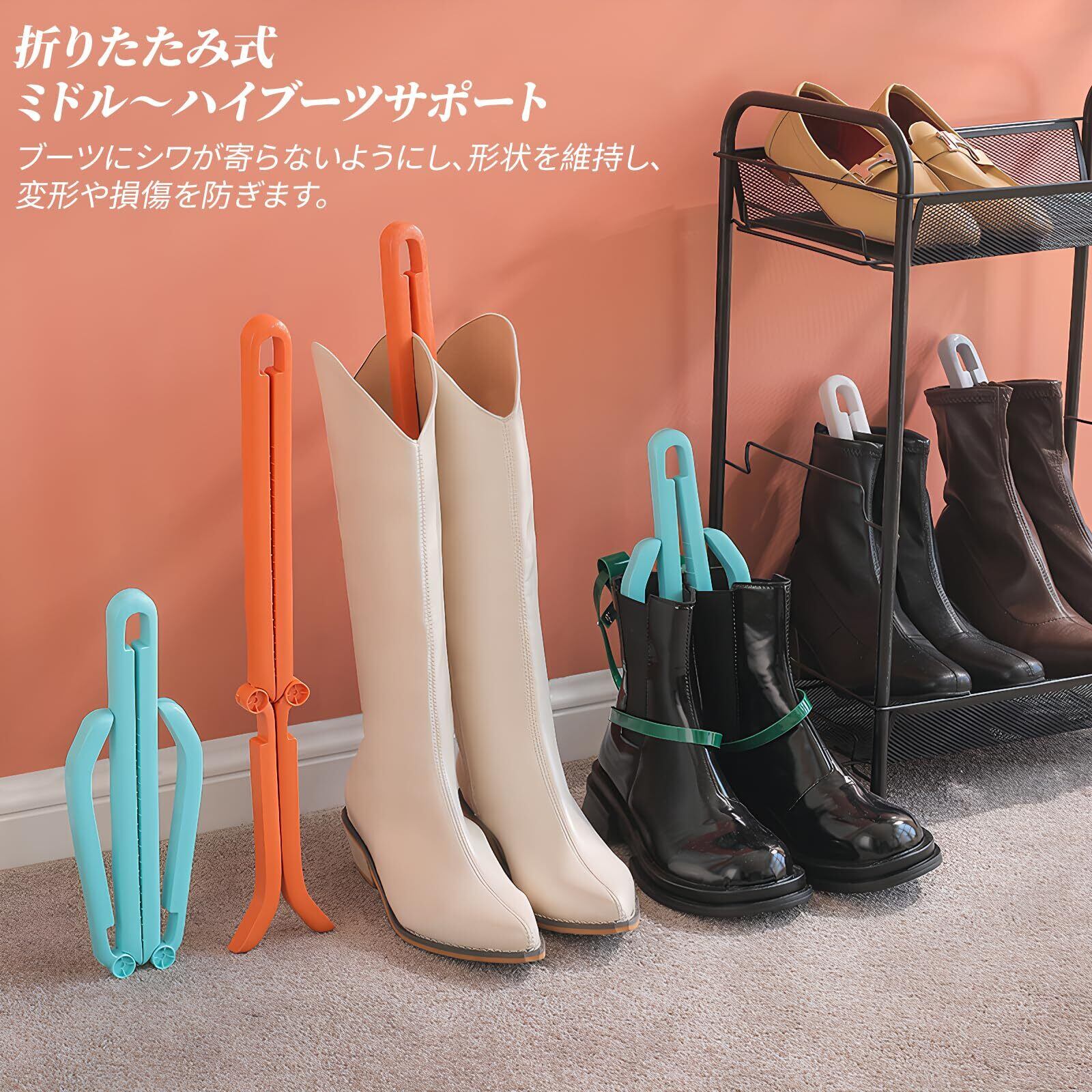 【実用セット・2個入り】:便利なブーツキーパー2個セット。サイズ:46×3cm(折りたたみ時 28×9.5cm)、カラー:オレンジ。ロングブーツやショートブーツなど、さまざまなタイプのブーツに対応し、収納や持ち運びにも便利です。
