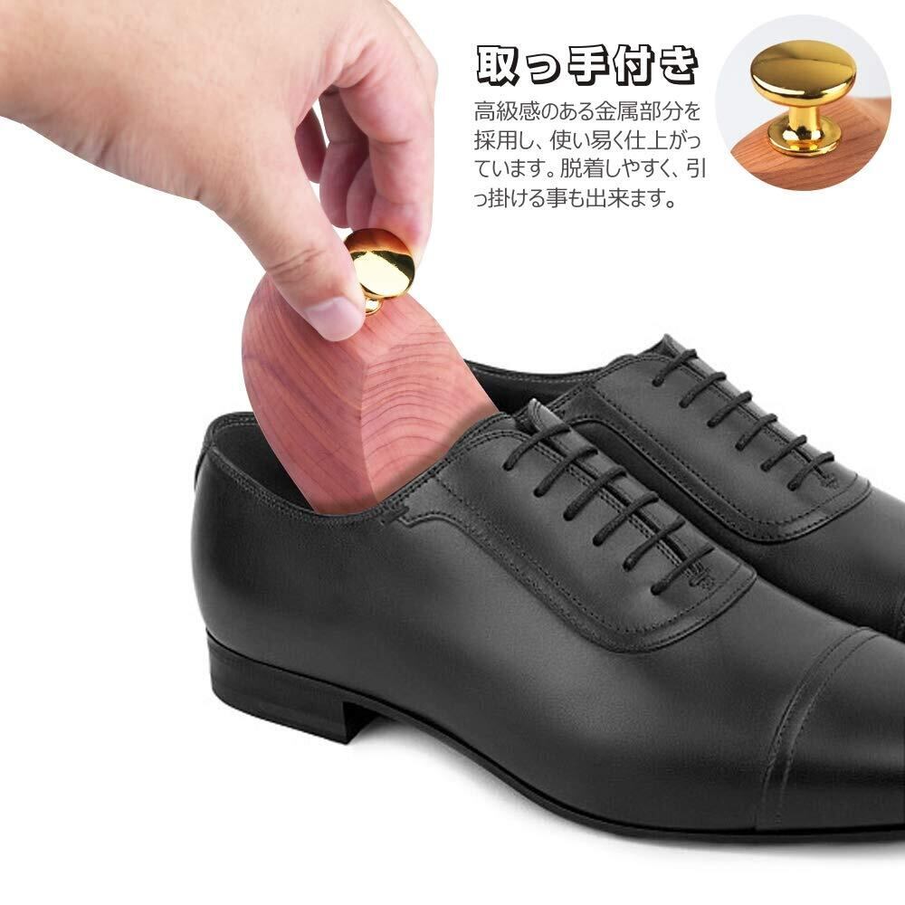 【高品質&天然のレッドシダー素材】シューキーパーはレッドシダー100%の天然木を使用しており、そのシダーの効果を十二分に発揮させる無塗装仕上げです。天然の成分により、防臭・防虫・芳香・殺菌抗菌・吸湿効果の高い、また、天然レッドシダーは変形、変質しにくく耐久性に優れた素材ですので、長期にわたり使用できます。