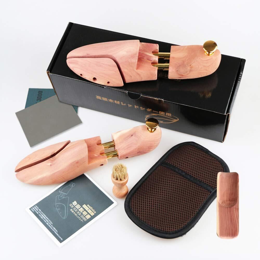 Wellnice シューキーパー シューツリー 高級レッドシダー 24.5-29cm対応 ブラシ・ムートン靴磨きクロス付 繋がる木紋 シワ伸ばし 型崩れ防止 調湿・脱臭・殺菌抗菌・香りメンズ
