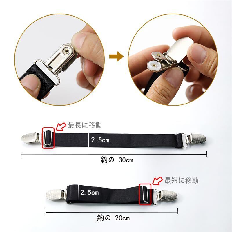 4個 調節可能な弾性ブーツ クリップ - 伸縮性のあるウィンター グローブ クリップ,幼児の子供の大人のための手袋クリップ、ドレスシンチセーターカーディガンショールクリップ (ブラック, 20cm)