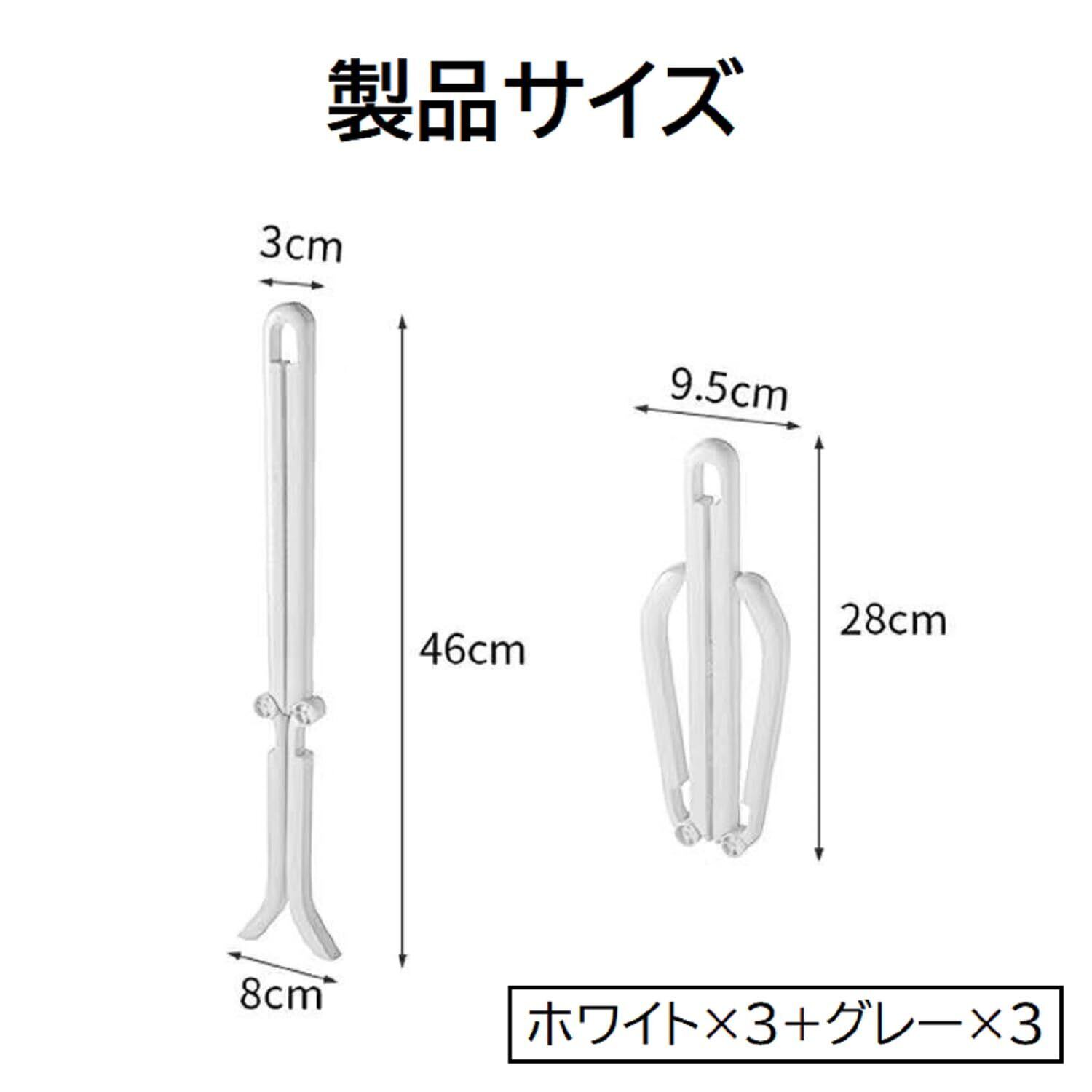 「商品仕様」素材:プラスチック。サイズ:46×3cm、折りたたみ後:28×9.5cm。セット:6個セット(グレーとホワイトが各3個)カラー:ホワイト + グレー