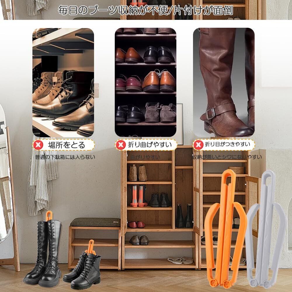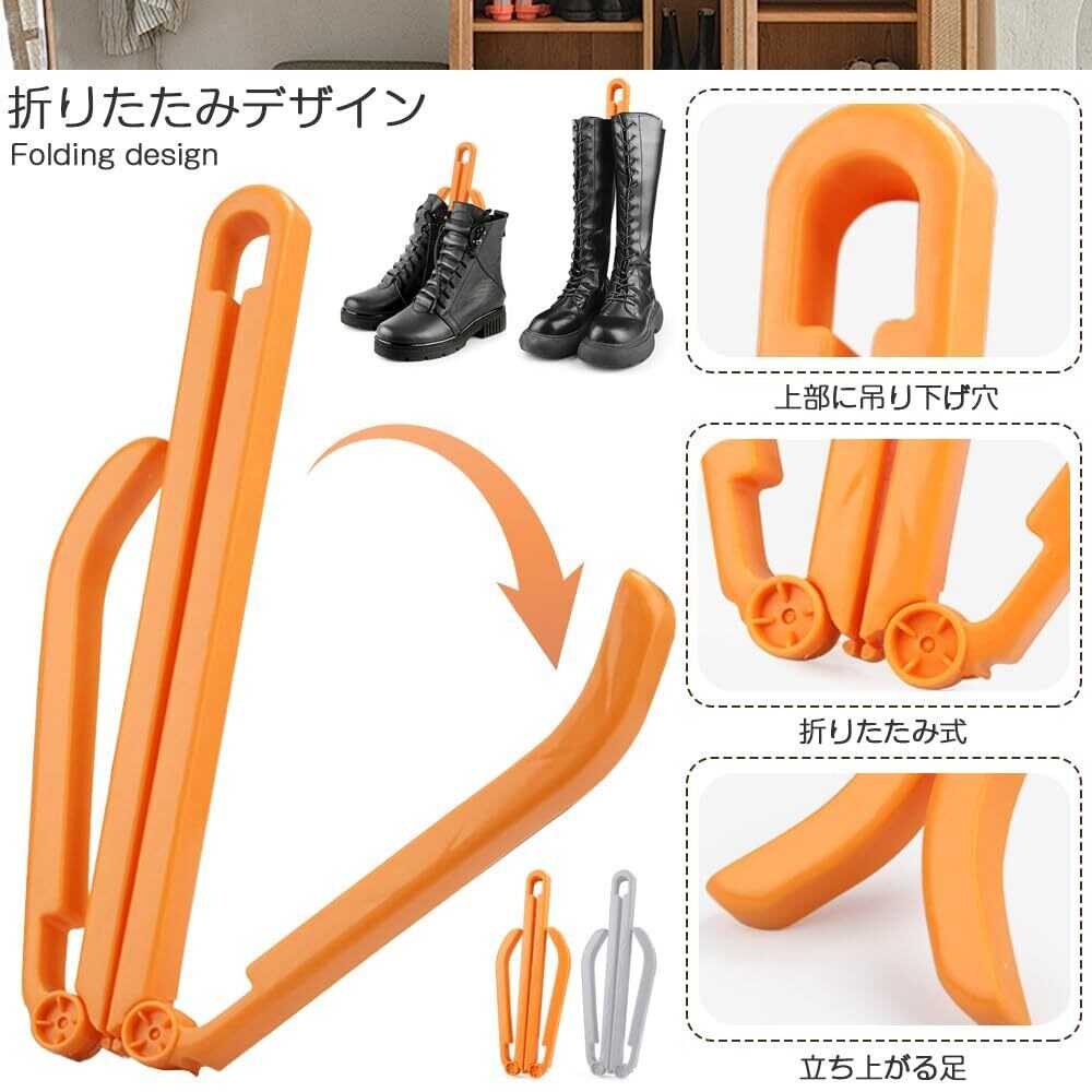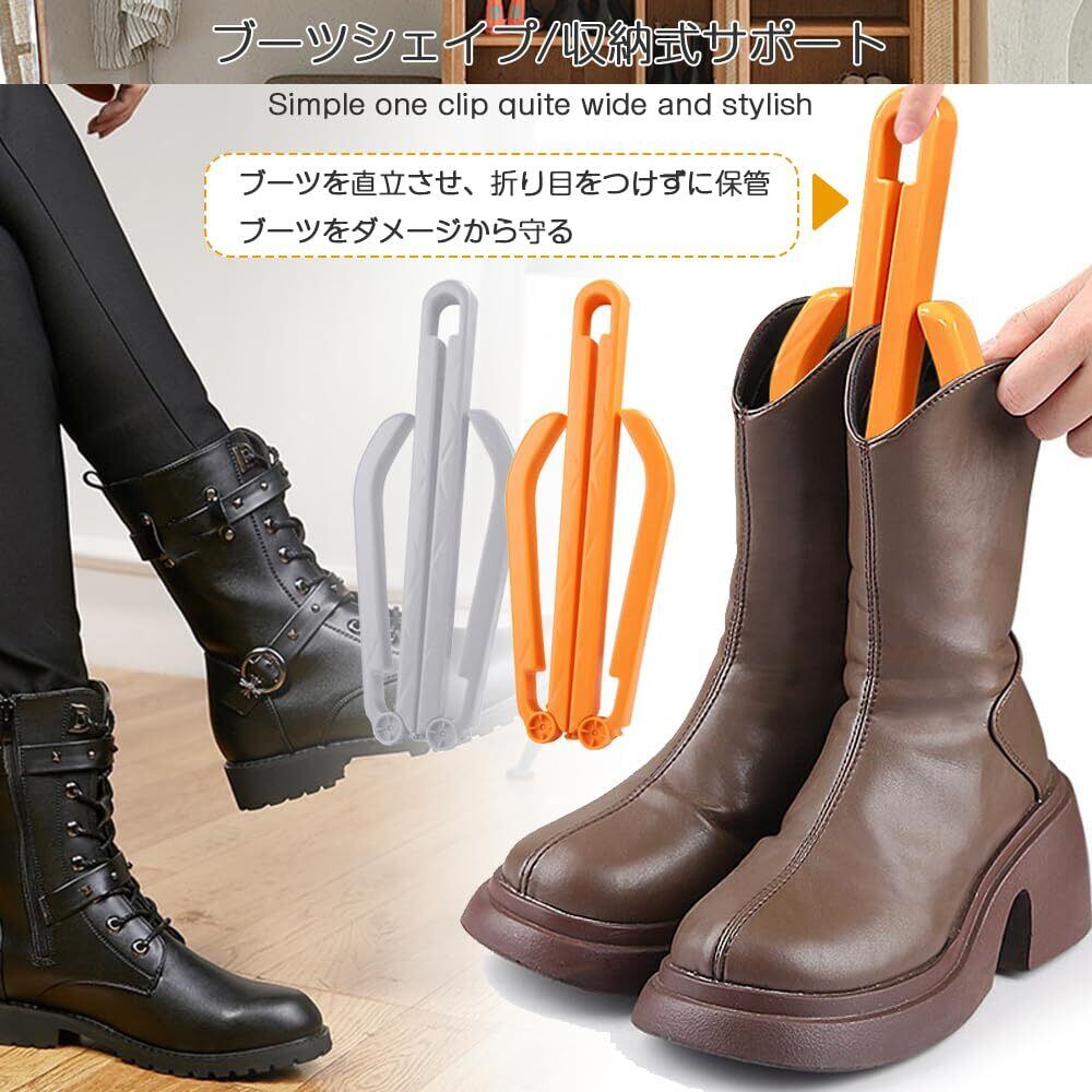ブーツキーパー クリップ 折りたたみ式 サポートブラケット2個セット ブーツ形状リテーナー 長靴 短靴 兼用可能 ブーツスタンド ブーツサポートフレーム クリップ 靴 PP素材 損傷軽減 変形防止 収納便利 46*3*8CM(オレンジ+グレー)