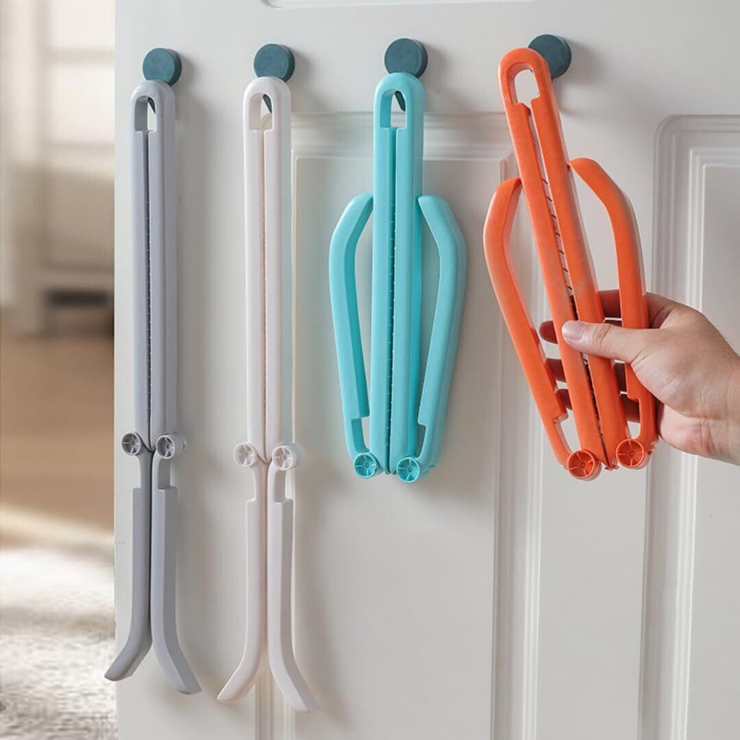 「クリップ式で簡単設置」クリップ式の構造を採用しているため、ブーツに簡単に挟むだけで固定でき、ブーツが直立し、折り目や形崩れを防ぎます。上部に収納用の穴があり、使用しない時はドアノブに掛けて保管できるため、収納場所を確保する手間が省けます。