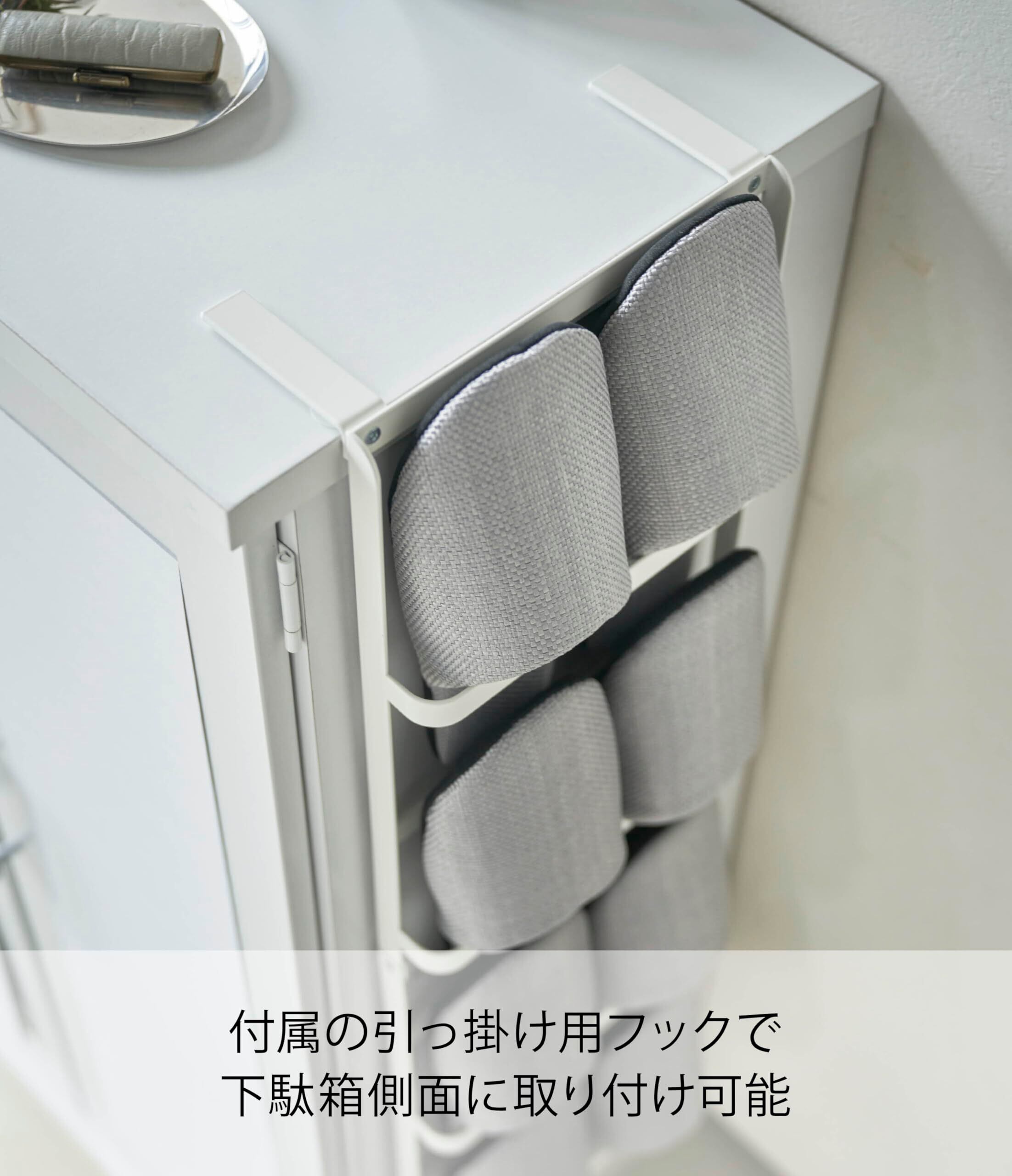 下駄箱の横や扉に引っ掛けて使う省スペース型スリッパラック。