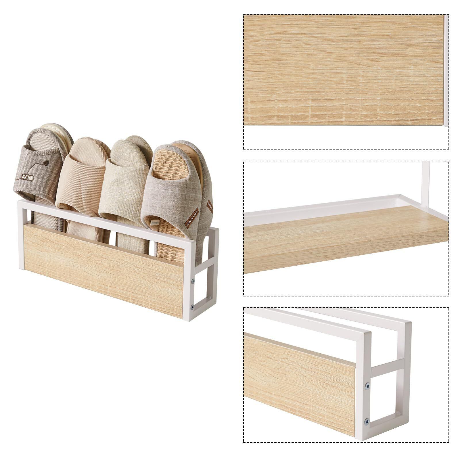 【シンプルなデザイン】高品質のパーティクルボードとアイアンフレームで作られ、頑丈で耐久性があります。木製のスリッパラックの木目は、独特のヴィンテージ・エレガンスを持っています。狭い玄関や廊下に置いても圧迫感のないスリムな横置きデザインです。ミニマムデザインで省スペースを実現。最大4足のスリッパがコンパクトに収納できます。スタイリッシュなフォルムはリビングにも調和します。