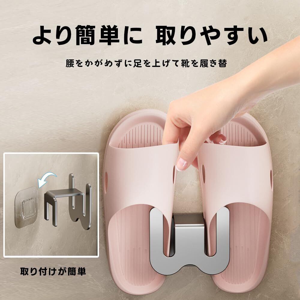 【安定性&強力粘着】高品質な強力粘着テープを採用し、しっかりと固定。長期間使用しても剥がれにくく、安心して使用可能。しっかりと支える設計で、スリッパをサッと取り出しやすく、使い勝手も抜群です。
