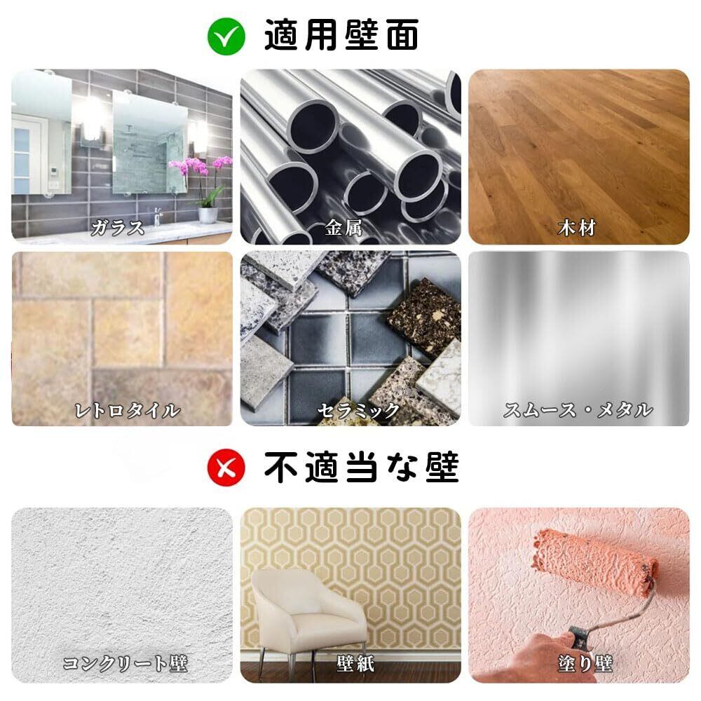 【取り付け簡単&壁に優しい】粘着式デザインで、穴を開けずに簡単に取り付け可能!壁やドア、窓ガラス、洗濯機などにしっかり固定でき、壁面を傷つける心配がありません。どんなお部屋にも馴染むシンプルなデザインで、快適な収納を実現します。