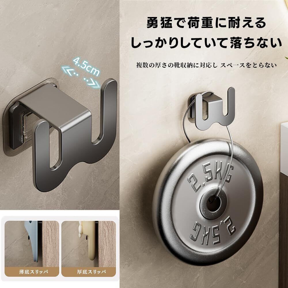 スリッパラック 壁掛け 強力粘着式 省スペース 玄関 浴室 ベランダ対応 スリッパ 収納 ラック 穴開け不要 壁面傷つけない おしゃれ 玄関スリッパ立て 室内サンダル収納ラック 2個セット