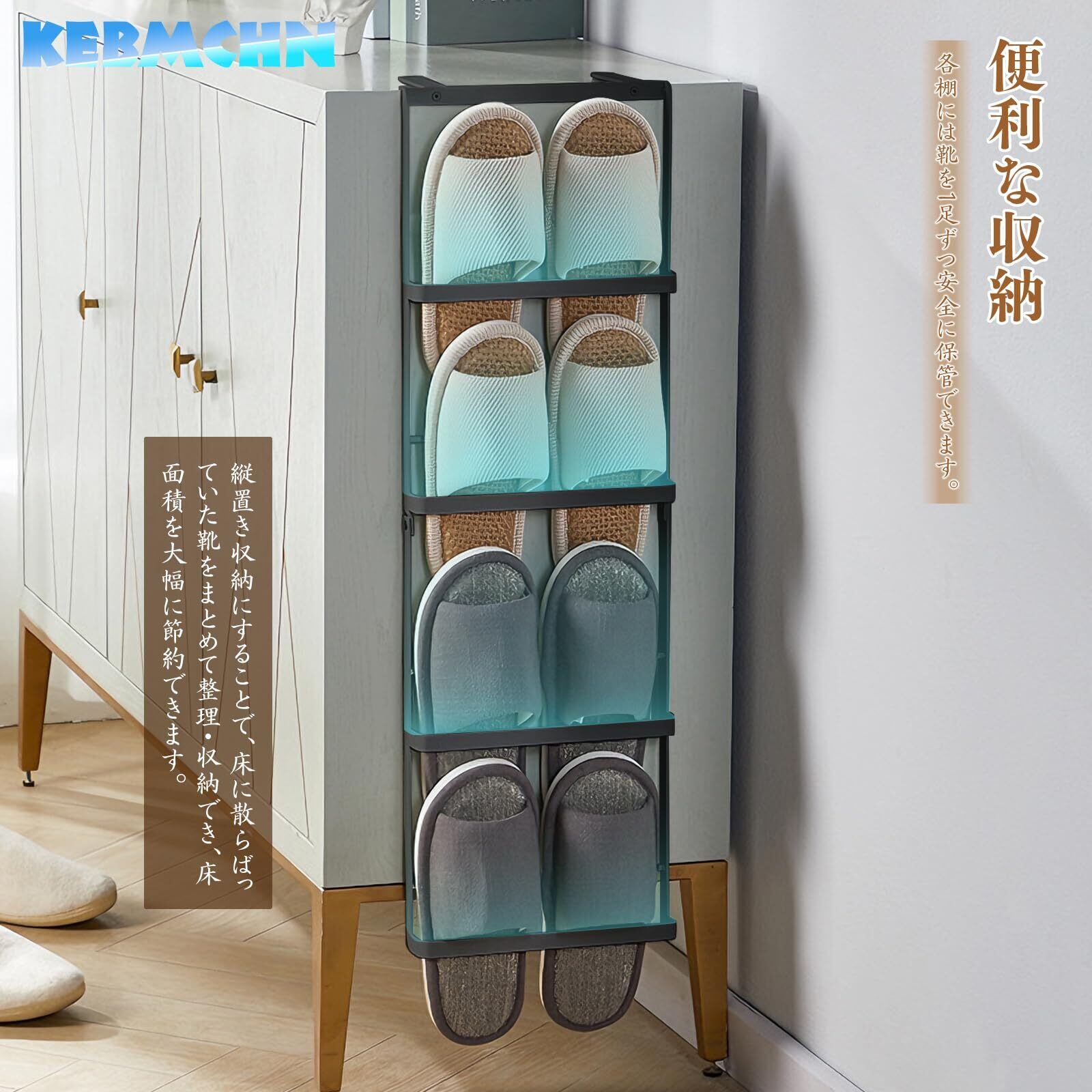 【便利な収納】スリッパ立てとして最適な設計で、1 段ごとに 1 足のスリッパを安定して収納でき、家庭用スリッパやバスルームスリッパの整理に最適です。垂直収納により、元々床に散らばっていたスリッパを集中的にまとめ、床面スペースを大幅に節約し、室内を開けた状態で清潔に保ちます。