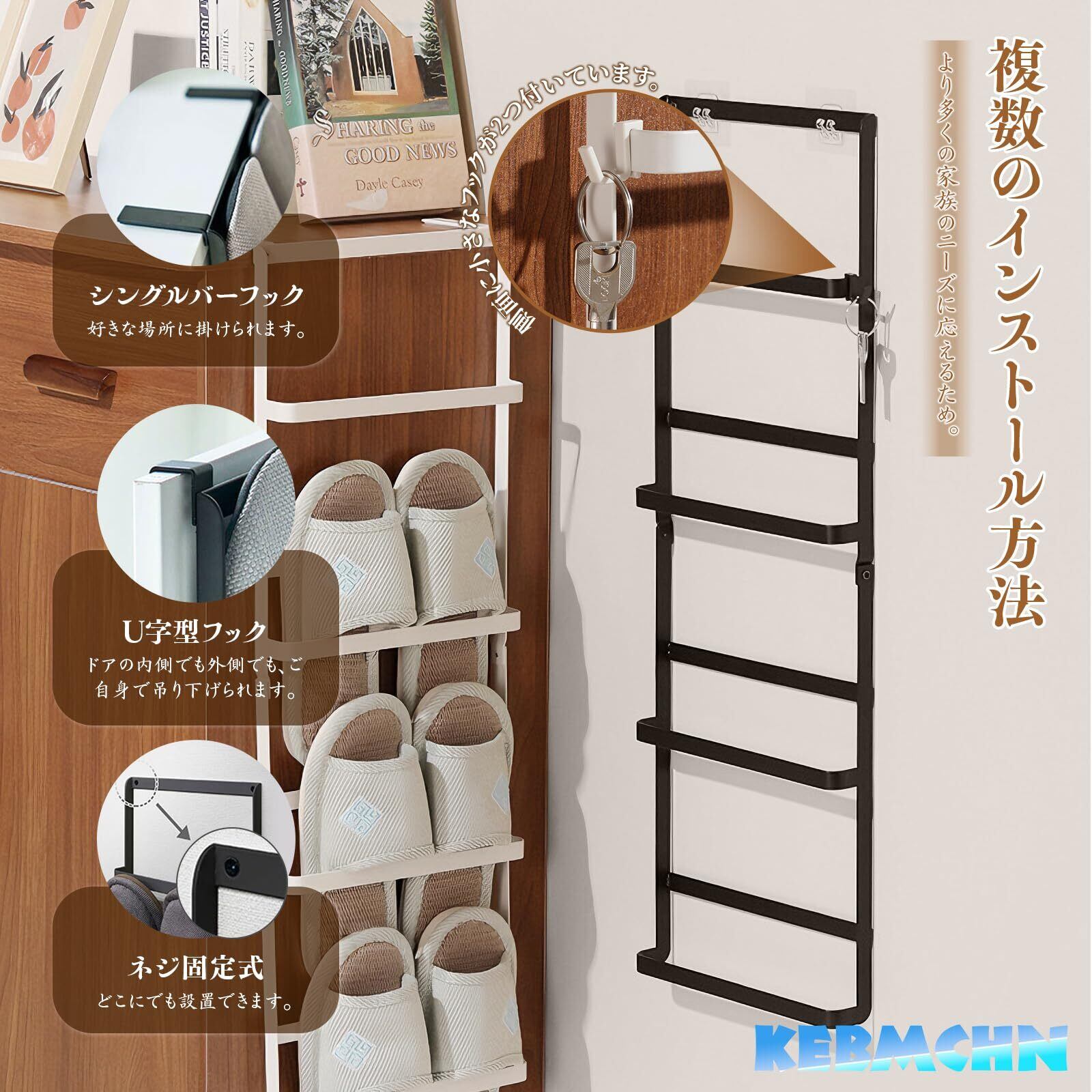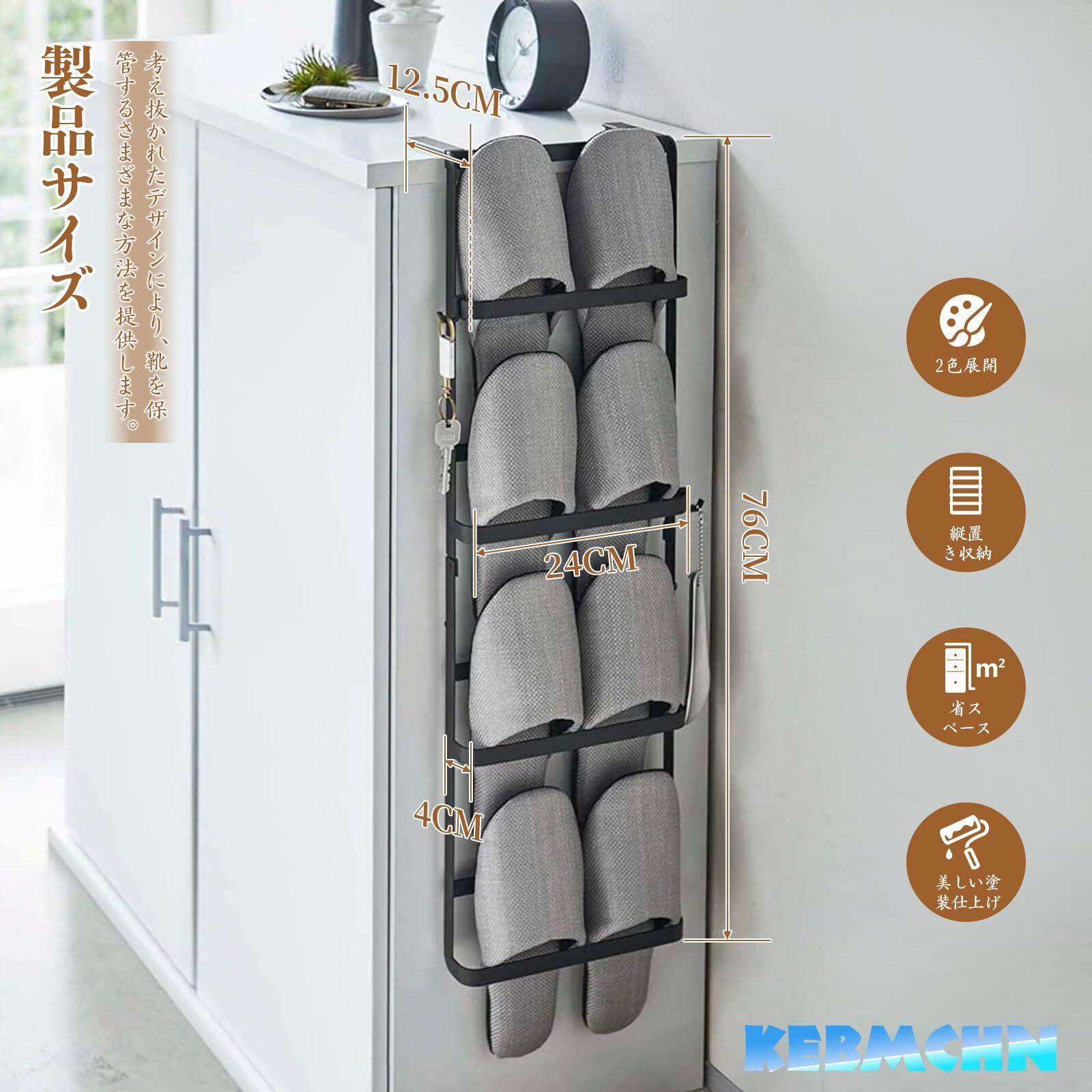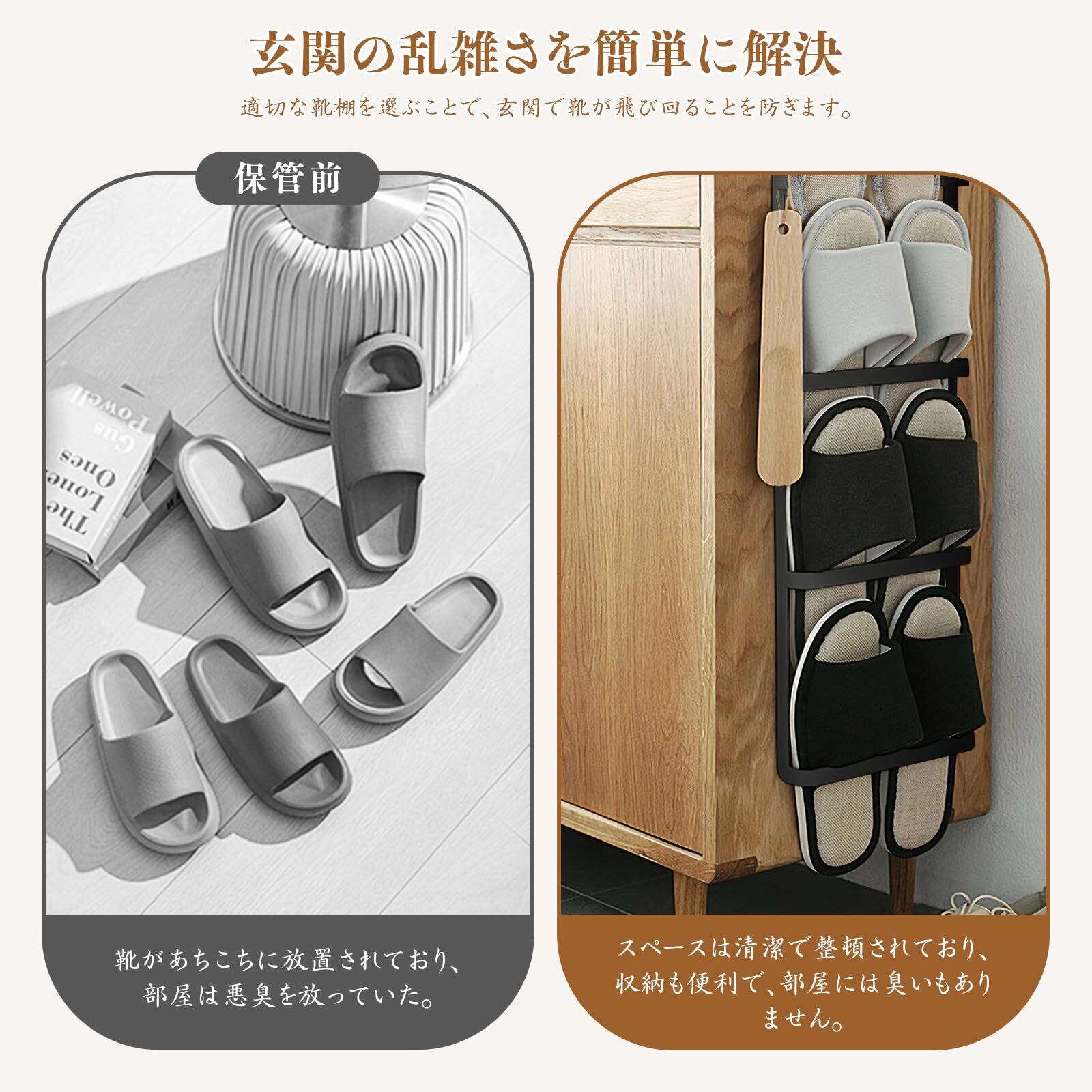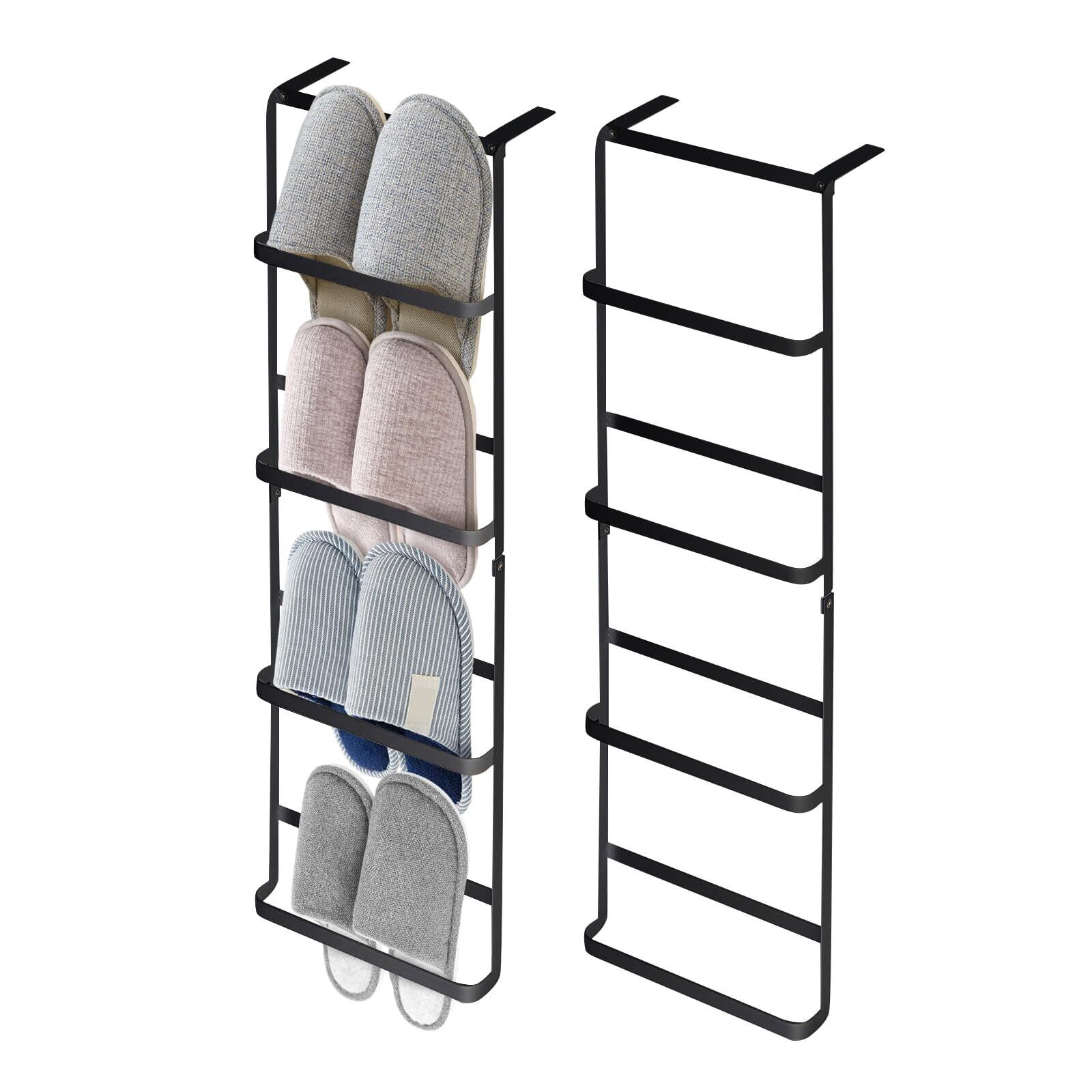 壁掛けスリッパラック 4段 引っ掛け式 玄関収納 ステンレス製 取り付け簡単 穴開け不要 省スペース バスルーム/寝室/ホテル対応 大容量 サンダル収納 スリッパ立て 安定性 バスルーム 室内 玄関 ベランダ 浴室 ホテル対応(ブラック)